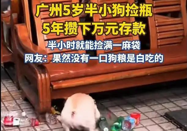 这个狗子最近火爆全网,他可不只是普通的宠物狗,而是一只喜欢帮主人捡瓶子的“打工狗!” 你想想,要是养这么一只小狗,多招人喜欢!据狗主人透露,这只狗子5年捡瓶子已经攒下万元存款,半小时就能捡满一麻袋!自从它在网上走红之后,一天由原来20-30元的收入,直接升到50-60元,附近的店铺也会把瓶子放在门口,等这只狗子来捡! 许多网友羡慕不已,纷纷询问这只狗子招徒弟吗,让自家狗子来学习学习,还调侃到如果多养几只这样的狗子,是不是就可以躺平了! 当然这只是网友的玩笑话,毕竟这样的狗子是少数,既能给主人提供情绪价值,又能带来经济收入! #捡瓶狗# #汪星人打工记# #城市打工狗#