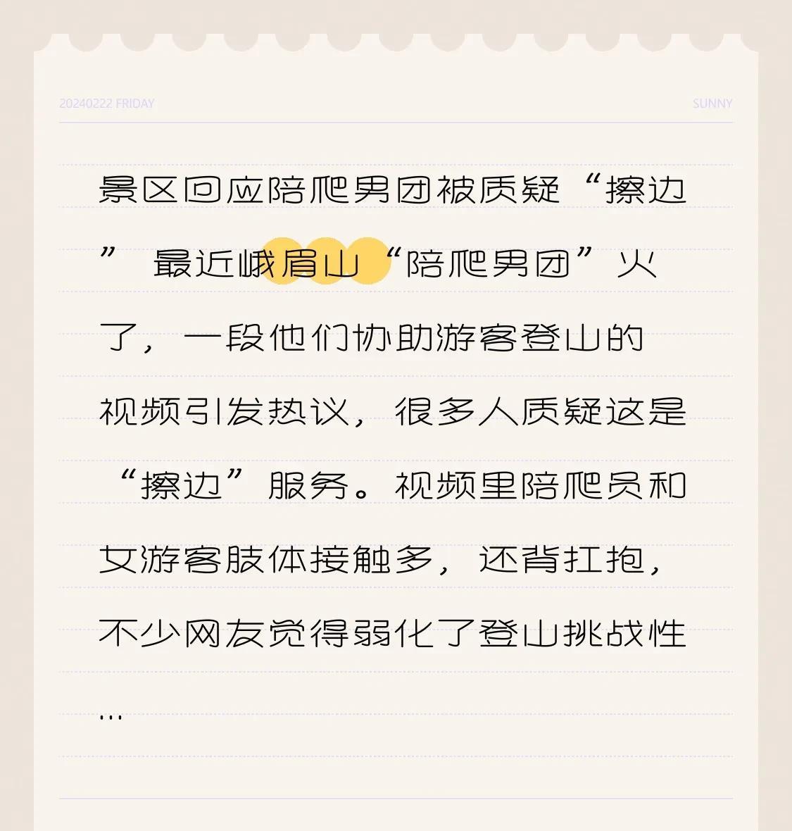 景区回应陪爬男团被质疑“擦边”最近峨眉山“陪爬男团”火了,一段他们协助游客登山