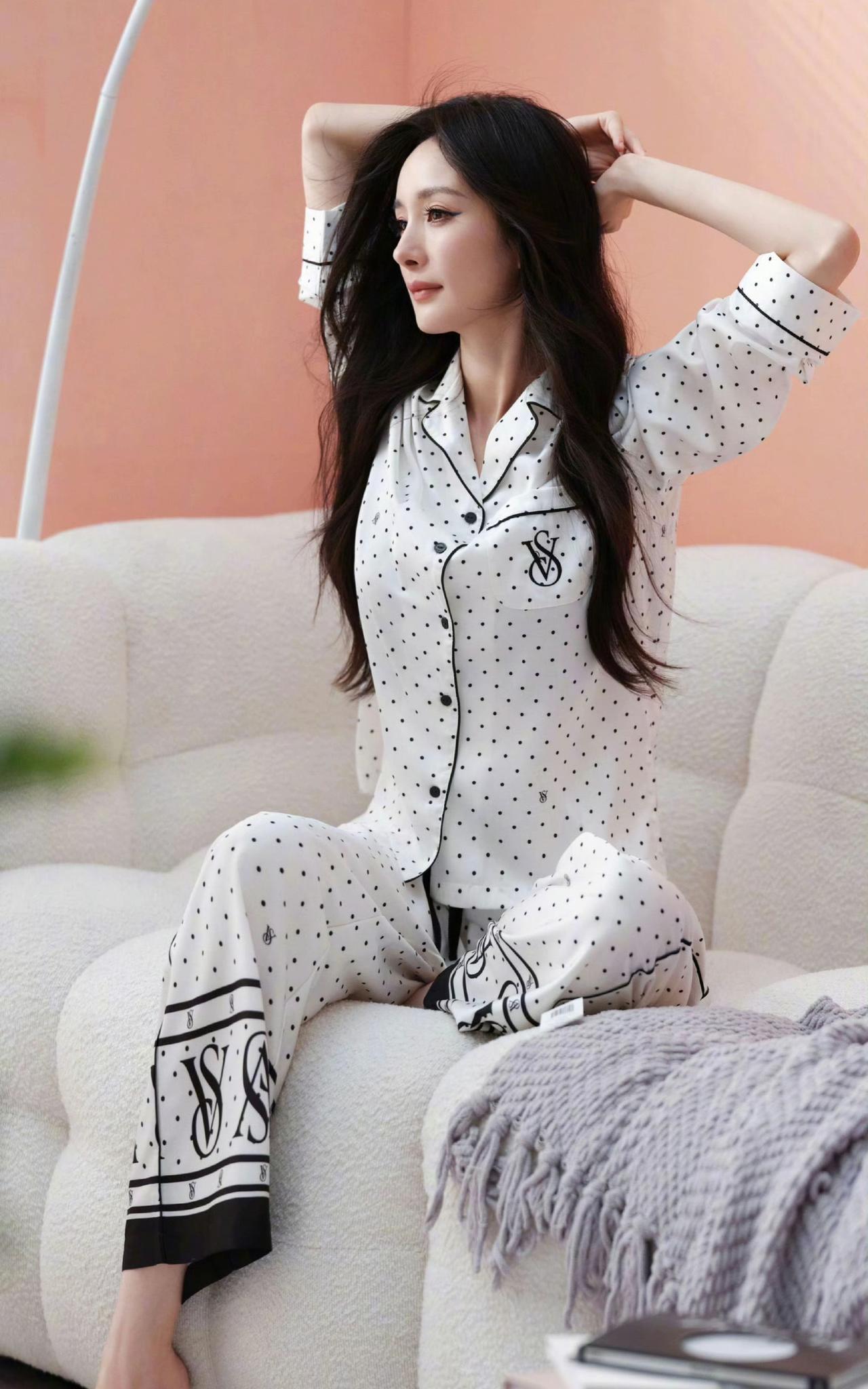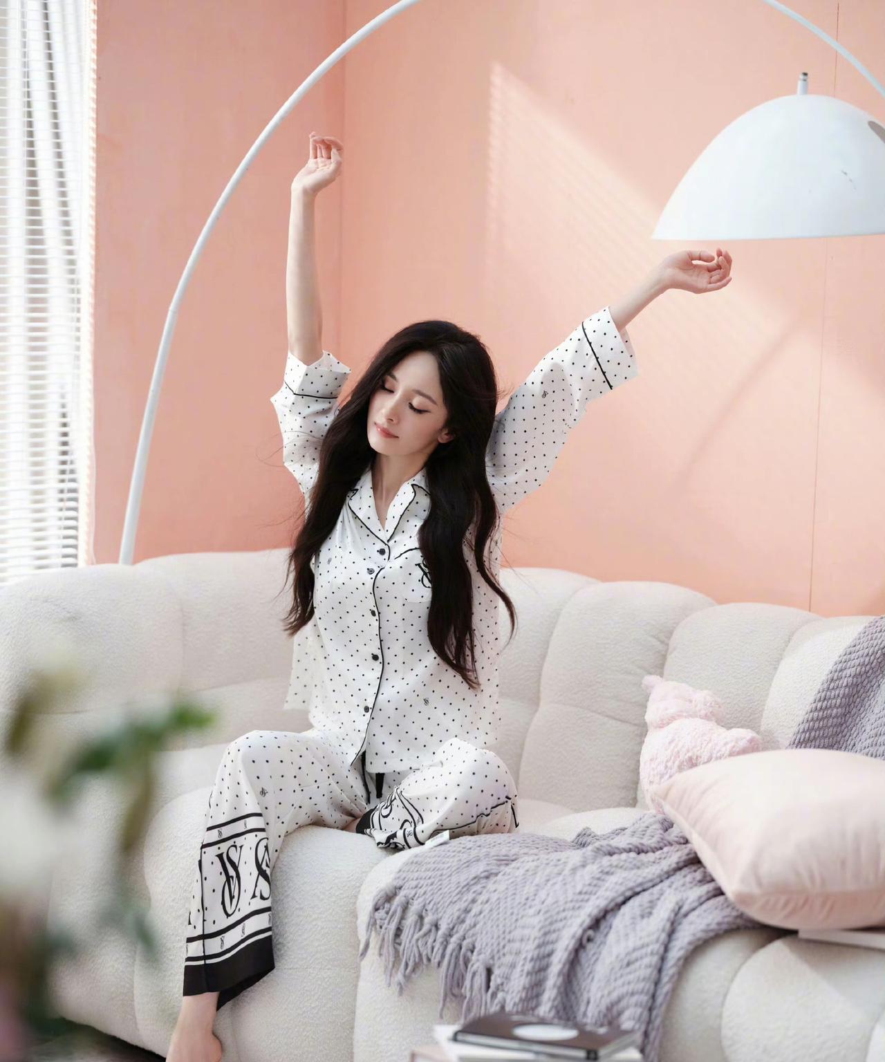 #杨幂#波点睡衣衬得氛围慵懒又精致,长发散落间,或静坐或舒展,把居家时光的松弛与优雅都藏进每一个姿态里,像一场温柔的休憩,满是自在的美感。
