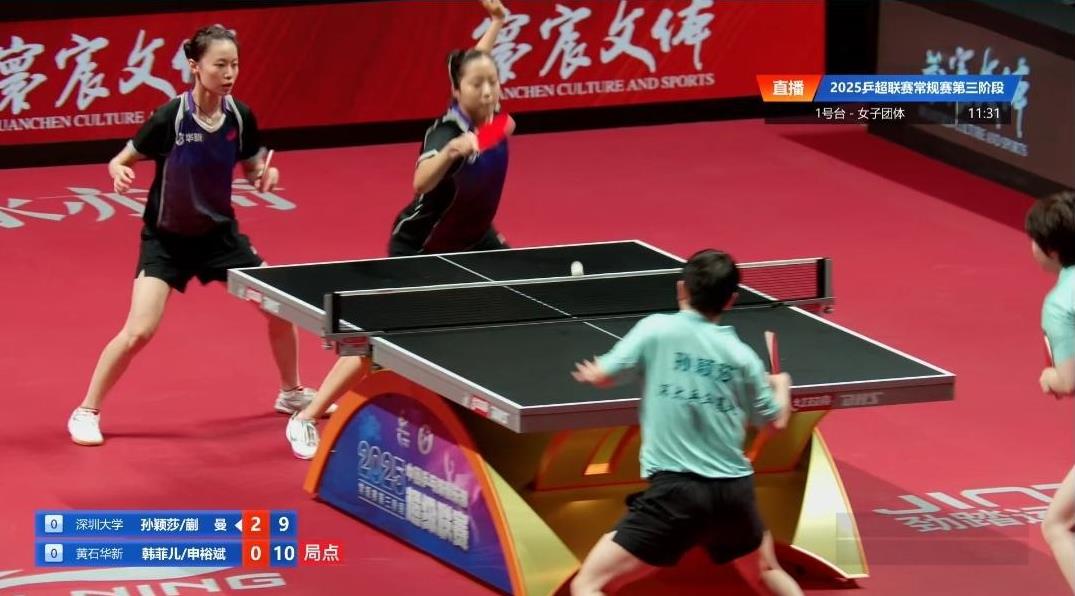 谢天谢地, 今天上午山东魏桥没有比赛! 不然的话, 王楚钦和黄友政度日如年啊! 女队那边的对阵, 简直不忍直视啊! 两个人的喜芬儿在肉搏, 在场边看球的好尴尬啊! 深圳大学是莎莎和蒯曼, 黄石华新是申裕斌和韩菲儿, 四个姐妹捉对厮杀, 真的拼到披头散发。 虽然比分是深大三比一获胜, 申裕斌和韩菲儿却紧咬不放, 其中莎莎和韩菲儿, 也是打得上下翻飞, 幸亏大头和黄油不在场, 否则一人抠出一套三室一厅! 嘻嘻, #记录真实生活#