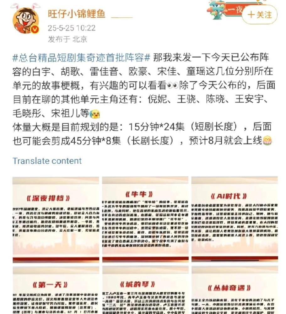 央视出手即王炸!短剧《奇迹》阵容堪称顶配 作为中央电视台推出的主旋律献礼短剧,《