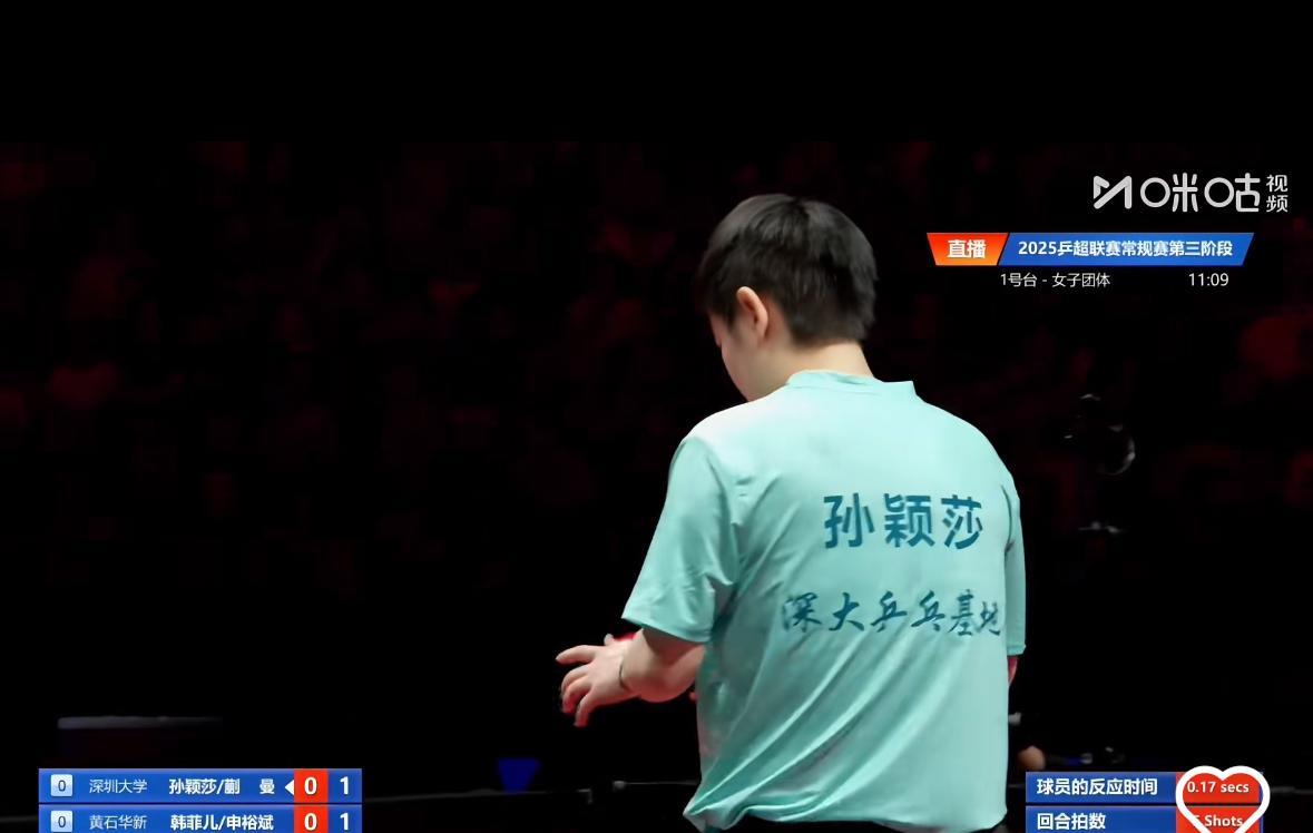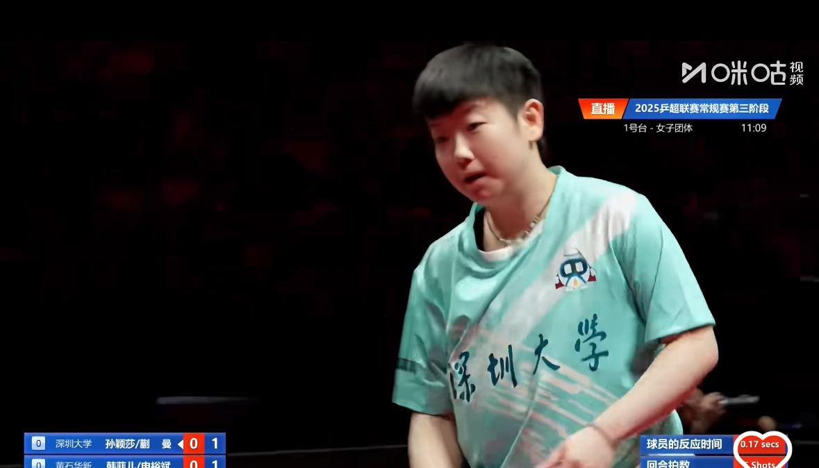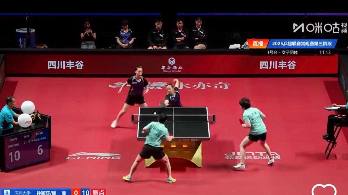 孙颖莎/蒯曼5:10落后翻盘,13:11拿下深圳大学猛猛冲 8月30日,乒超联