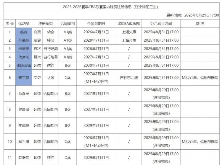 阵容成形!辽宁男篮新注册6名球员,李晓旭再续约! 在交易截止日前,辽宁男篮新注册