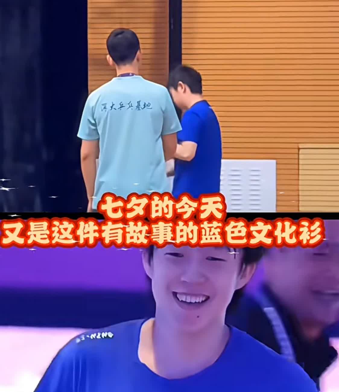 今天的浪漫是蓝色给的,蓝色象征宁静平和,信任和永恒。 蓝色是谁的幸运色?鲨鱼喜欢蓝色的大海,蓝色的大海是她美丽的家园。 魏桥全身黑,深大个个紫。只有他俩例外,都是蓝色。不用问,问就是巧合。“岂曰无衣?与子同袍。” 头哥今天的状态可以用两个字来形容:荡漾。肉眼可见的鲜活灵动,眉眼带笑,开心的笑容打从屏幕中溢出来。 难道是新疆乌鲁木齐的水土不一样?我猜,今天的空气都是甜的吧。 头哥的快乐满溢要分享,训练的时候,逗完陪练逗教练,仿佛重回当年十八岁的青春季,少年不识愁滋味。 同频共振的人不需要礼物,只要彼此同框,为着共同的心愿一起努力。日复一日、年复一年的训练和比赛,也显得生动无比。 待到梦想实现,洛奥圆梦时:时光静好,与君语;细水流年,与君同。