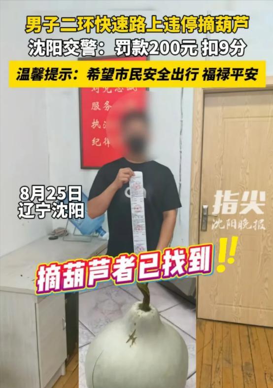“这就是手欠的下场!”辽宁沈阳,一小伙因为手欠,竟将二环内900万人守护的大葫芦摘走,并发在网上炫耀“二环葫芦我拿走了”。最终不仅被扣9分罚款200元,就连筹备已久的婚礼也被取消,小伙肠子都悔青了!网友:摘了葫芦丢了福! 在沈阳的二环高架桥边上,长着一个特别圆润可爱的葫芦。 这个葫芦因为长得好看,又恰好与“福禄”谐音,成了不少过往司机眼中的小风景。 每天开车经过这里的人都会多看它两眼,还有人专门拍照发到网上。 渐渐地,这个长在高架桥护栏边的小葫芦,成了沈阳人津津乐道的一个小话题。 从八月初开始,葫芦慢慢长大,渐渐垂到了围栏外,关注它的人也越来越多了。 有人每天路过都会摇下车窗和它“打招呼”,还有人在社交账号上更新“葫芦日记”,标题常写着“今日葫芦安好”。 这座繁忙的高架桥上平时车来车往、风景单调,这个意外生长的小生命,给城市增添了一份亲切和生机。 然而到了八月二十三号晚上,情况发生了变化。 一名男子开车经过时,故意把车停在高架桥上,翻过护栏去摘这个葫芦。 他用了各种方法,最后用一根绳子套住了葫芦,但因为操作不当,葫芦掉在地上摔碎了。 这个人把摘葫芦的过程拍成视频发到网上,本想吸引关注,却引发了完全相反的效果。 网友们看到视频后都很生气,纷纷批评这种破坏公共环境的行为。 很快,这个人的信息就被找了出来,他姓郭,是沈阳本地人。 事情发酵后,郭某在八月二十五号公开道歉,表示自己是一时冲动,没有想到会引起这么大反应。 他还提到,原定的婚礼已经取消,责任都在自己,恳请大家不要因此事对他们造成困扰。 与此同时,交警部门也对其行为作出处罚:因违规停车和危险驾驶,被罚款两百元、驾驶证记九分。 这个葫芦虽为野生,却已成为许多市民日常中的一点慰藉。 它的突然消失让不少人感到惋惜和气愤。 有人感叹,大家气的不是葫芦本身被摘,而是连这样一点小小的美好都没能守住。 但故事到这里并没有结束。 令人欣慰的是,就在第二天晚上,有市民在同一段护栏边发现了另一个新长出的小葫芦。 热心人小心地把它移到原先的位置,继续陪伴每天往来的人们。 这个被大家称作“葫芦二弟”的新生命,也很快受到关注和保护,有人建议设立提示牌,呼吁共同爱护它。 交警部门也借此提醒广大市民,高架桥上车速快、车流大,随意停车和翻越护栏非常危险,一旦出事后果不堪设想。 这次事件也给许多人敲响了警钟,遵守交通规则、注意公共安全,是对自己和他人都负责的表现。 这只小葫芦的故事仿佛一面镜子,照出了人们对美好事物的珍惜,对公共秩序的自省,也体现出城市生活中人情味的温暖。 它原本只是桥边偶然生长的一株植物,却因为众人的关注与爱护,成了连接大家情感的纽带。 如今,新葫芦还在二环高架上静静地生长,而经过的人们也更加懂得了如何更好地守护这份小小的美好。