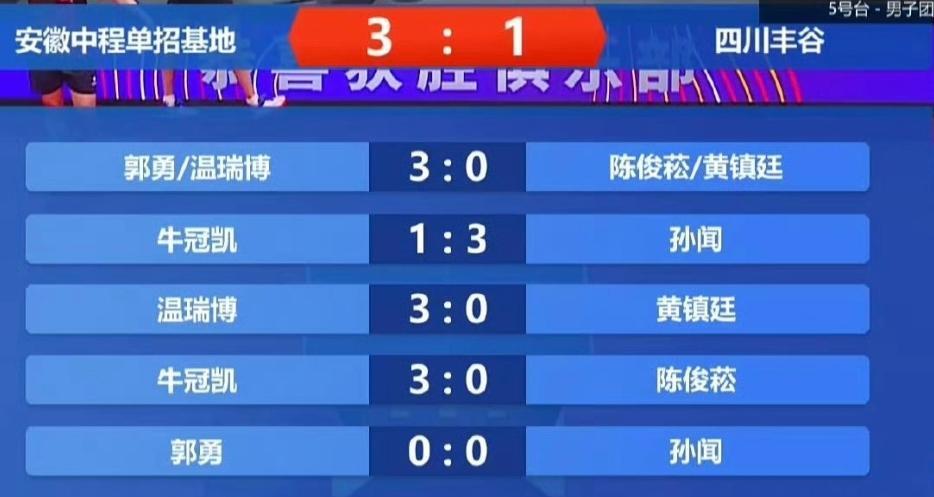 乒超联赛第三阶段8.30上午场战绩:孙颖莎蒯曼助力深圳大学3:2险胜黄石华新! #2025乒超联赛第三阶段# 正在进行,今天上午结束了四场比赛,男团比赛中,黄石华新连胜三盘,以总比分3比0战胜了汕头明润,向鹏/薛飞在首盘双打以3:1战胜了林高远/徐海东;之后林诗栋上场以3比0战胜了陈垣宇,两人虽属同一年龄段,但林诗栋发挥更好;第三盘,薛飞3:2逆转战胜了徐海东,为黄石华新锁定胜局! 安徽中程单招基地以总比分3比1战胜了四川丰谷。小将温瑞博在双打和单打分别建功,实力逐步提升!牛冠凯一胜一负,第四盘3比0战胜陈俊菘为队伍拿下胜利! 山东鲁能在外援松岛辉空带领下,以大比分3比0完胜福建安井!松岛辉空在双打和单打都胜出了,实力不俗! 女团比赛,深圳大学派孙颖莎、蒯曼、覃予萱出战,对阵由申裕斌、韩菲儿和姚睿轩出战的黄石华新,比赛一波三折,结果覃予萱一单先后不敌姚睿轩和韩菲儿丢了两分,决胜局孙颖莎3比0战胜了姚睿轩锁定胜局!