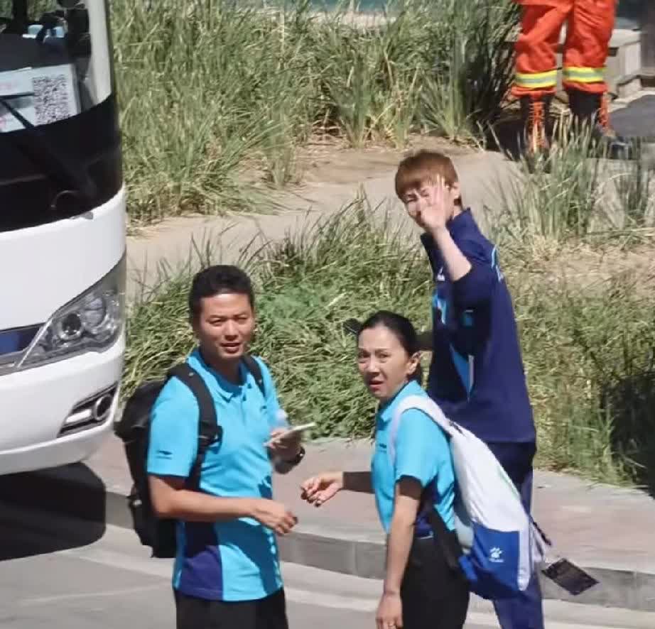 被晒得皱皱巴巴的王曼昱,听到球迷喊自己名字,挥手打招呼! 新疆乌鲁木齐乒超联赛