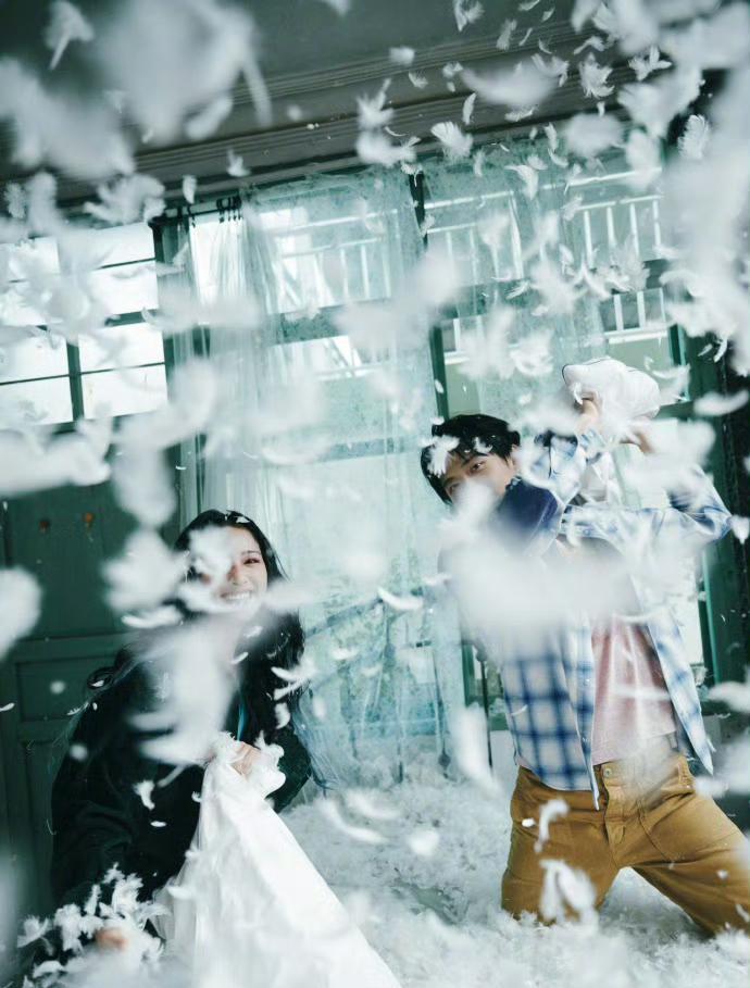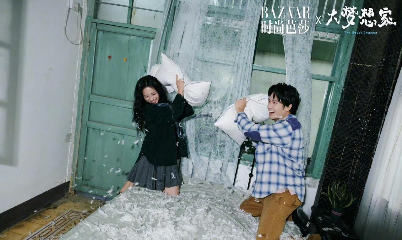 沈月与吴汉坤为电视剧《大梦想家》拍摄的七夕芭莎大片。