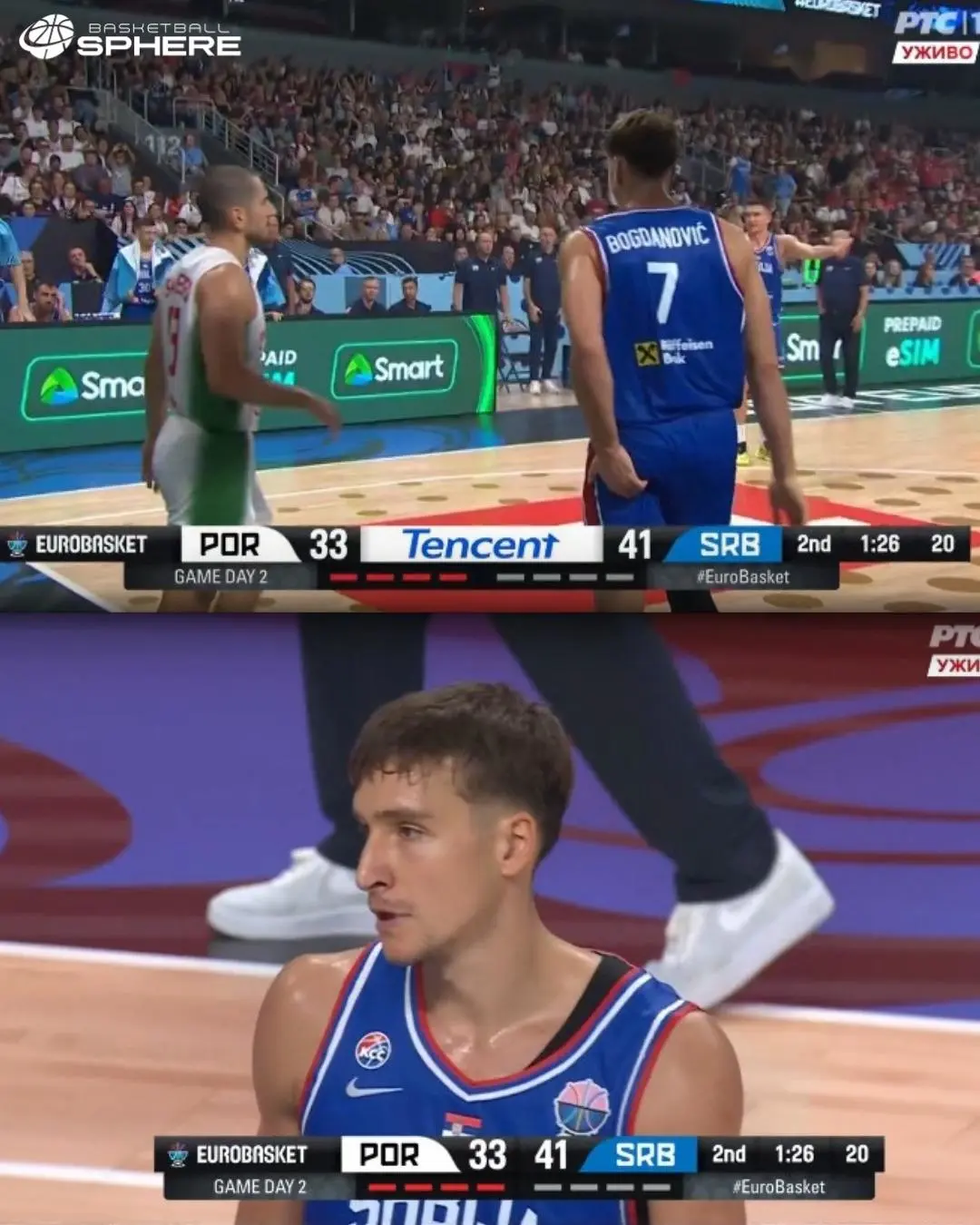 隐患!塞尔维亚队长博格丹腿筋受伤 ,欧锦赛场均9分&命中率77.8%!