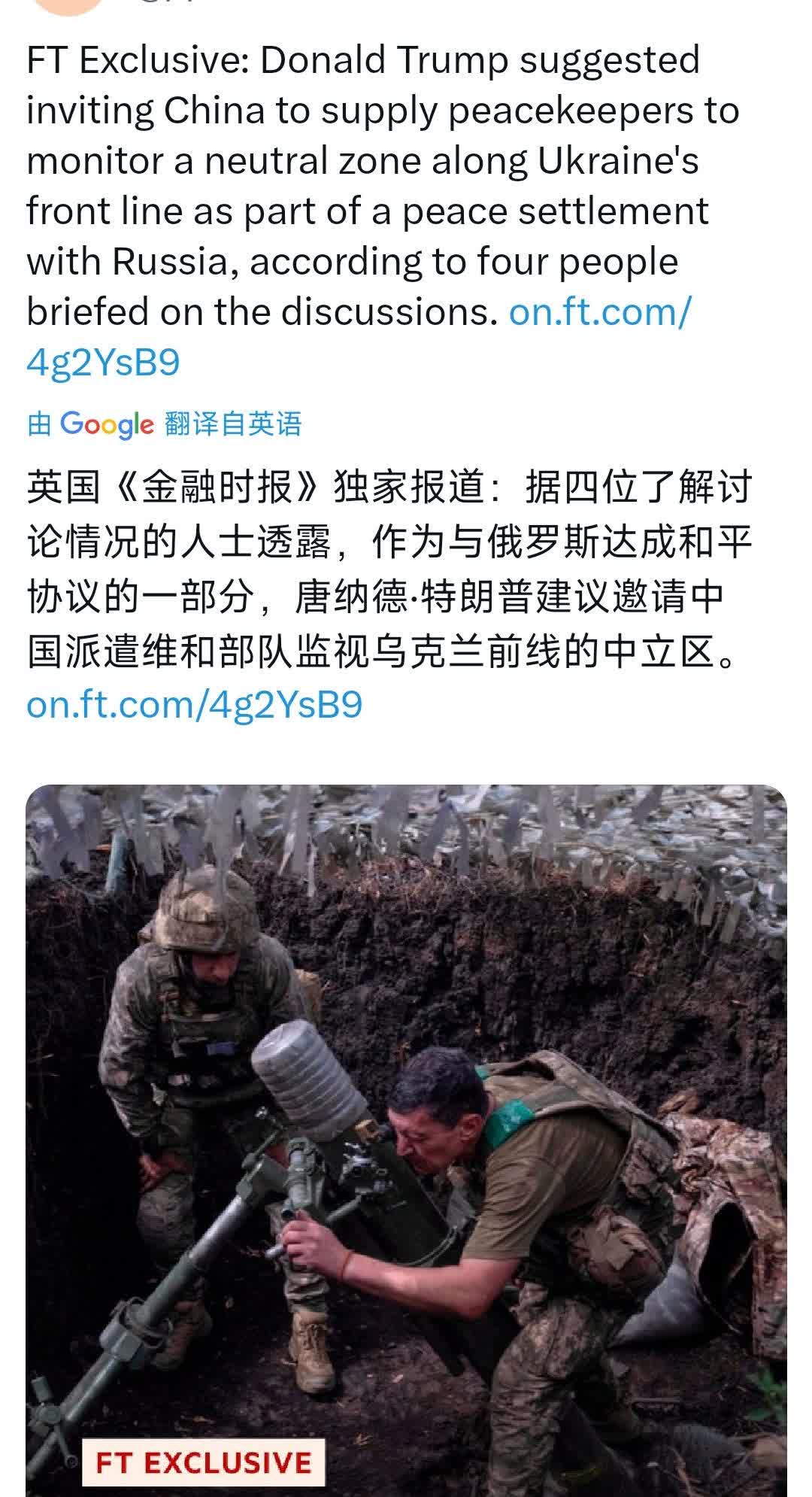 英国《金融时报》今天(8月30日)独家报道:作为与俄罗斯达成和平协议的一部分,特朗普建议邀请中国派遣维和部队监视乌克兰前线的中立区。 [机智]评几句:特朗普的建议,纯属一厢情愿的想当然之举。俄罗斯明确拒绝北约成员国派遣维和部队,他便将算盘打到了中国头上。乌克兰问题盘根错节,有着复杂的历史根源与现实纠葛,实则是美西方持续拱火、肆意浇油所致。中国始终秉持客观公正的态度,积极劝和促谈。然而,中国绝不能派维和部队蹚这滩浑水,否则极易被拉入美西方精心布置的陷阱,致使自身利益蒙受损失。中国自有主见,定会坚定依照自身原则推动和平进程,不为任何无理建议所裹挟。