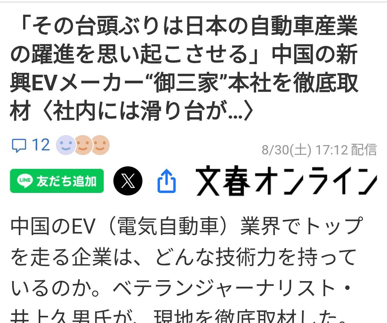 日记者造访小鹏称想起当年的日本汽车 8月30日日媒《文春在线》刊载了日本资深记者井上久男造访小鹏汽车的报道。 文章标题:从现在的中国EV企业看到了当初日本汽车的崛起 小鹏具备怎样的技术能力? 与蔚来、理想汽车一起成为中国新兴电动汽车制造商“御三家”。 小鹏成立于2014年,早在2020年就在纽约证交所上市。 CEO何小鹏在将自己创办的IT公司卖给阿里巴巴后,创立了小鹏汽车。 笔者于2019年访问过该公司,虽然总部大楼与当时一样,但业务内容发生了明显变化。 当时,它没有自己的工厂,将生产外包给其他汽车制造商,但现在它在武汉拥有自己的工厂。 2023年,小鹏获得德国大众汽车7亿美元(约合1036亿日元)的投资,并签署战略联盟协议,推动联合采购。 此外,它还在印度尼西亚建立了一家组装工厂,从中国进口关键零部件并在当地组装。 在美国硅谷设有开发基地。 进入五层的总部大楼,从三楼到一楼有一条大滑梯。 我有时会看到美国和中国的互联网公司出于玩乐而设置滑梯。 事实上,在小鹏汽车,工作繁忙的员工有时从滑梯下来。 胡逸寧副総裁说:“这是我们使用的非常重要的工具,我也用它来参加销售公司的活动。” 这栋建筑原本是一个购物中心,小鹏汽车租下了它,并将其用作总部。 一座新的总部大楼将于今年晚些时候在附近竣工。 “新总部的设计灵感来自硅谷的一家领先公司。” 胡副总裁接着介绍了小鹏的海外战略。“我们已经在 30 多个国家和地区开展业务,计划到 2025 年底将其增加到 60 多个,到 2033 年,我们的目标是一半以上的销售额出自到海外市场。 小鹏2024年总销量同比增长34%至19万辆。 其中,47,000 台销往海外。截至7月,2025年的总销量已经超过了去年全年。 目前,在中国势头强劲的汽车相关企业都在向海外市场扩张。 中国汽车工业在1990年代和2000年代通过与海外公司建立合资企业而获得实力。 比亚迪目前全球销量已经突破400万辆,超过本田和日产。 2023年,汽车出口量超过日本,成为全球第一。 中国汽车的崛起让人想起1980年到1990年代日本汽车工业的突破性发展。