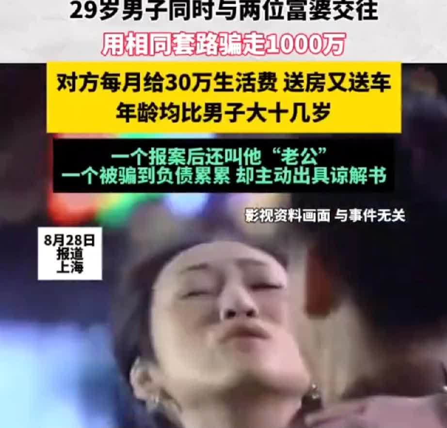 29岁男子林宇 酒吧卖酒月入超30万 同时与两位年长富婆“姐弟恋” 用银行卡冻结 母亲生病 等理由 骗走超千万‼️ 这完全是短语小说人设啊: 好赌的爹 生病的妈 上学的弟弟 懂事的他‼️ 这场以姐弟恋为名的大戏比影视剧还要荒诞 六个月期间,林宇向李鑫借款800余万后又骗走吴敏950万元所得,款项均用于赌博。 男子涉嫌诈骗罪被检察机关提起公诉 李鑫每月给他30万生活费,还送房送车。报案后还叫林宇“老公”。 最利于令人唏嘘的是,案发后,吴敏即使被骗的负债累累,但她看到林宇父母借钱度日,一身疾病,还在打工还账,便心软签了谅解书。 这是有多爱[捂脸]有些男人谈个恋爱分手了,还让女友归还所有转账开销和礼物。