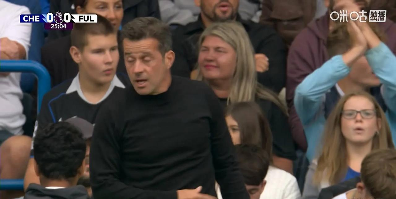 英超联赛切尔西对阵富勒姆,上半场富勒姆进球被吹,主教练马尔科-席尔瓦表示非常不理解! 富勒姆这次反击打的相当精彩,穆尼斯中场倚人做球,后插上的队友顺势一脚直塞给到18岁的约什-金。 小伙子一路狂奔杀入禁区,扣过一名防守球员后续低射近角破门。 随后VAR介入,穆尼斯在中场护球时踩到了切尔西球员,因此进球被判无效。 但是通过慢动作反复回看,穆尼斯这是一个非常正常的护球动作,与其说是穆尼斯踩到了切尔西球员,倒不如说是切尔西球员垫到了穆尼斯。 对于主裁判的这次判罚,场边的富勒姆主教练马尔科-席尔瓦非常不理解,但是却最终无法改变主裁判的这次判罚。 切尔西也因此逃过了早早落后的局面!