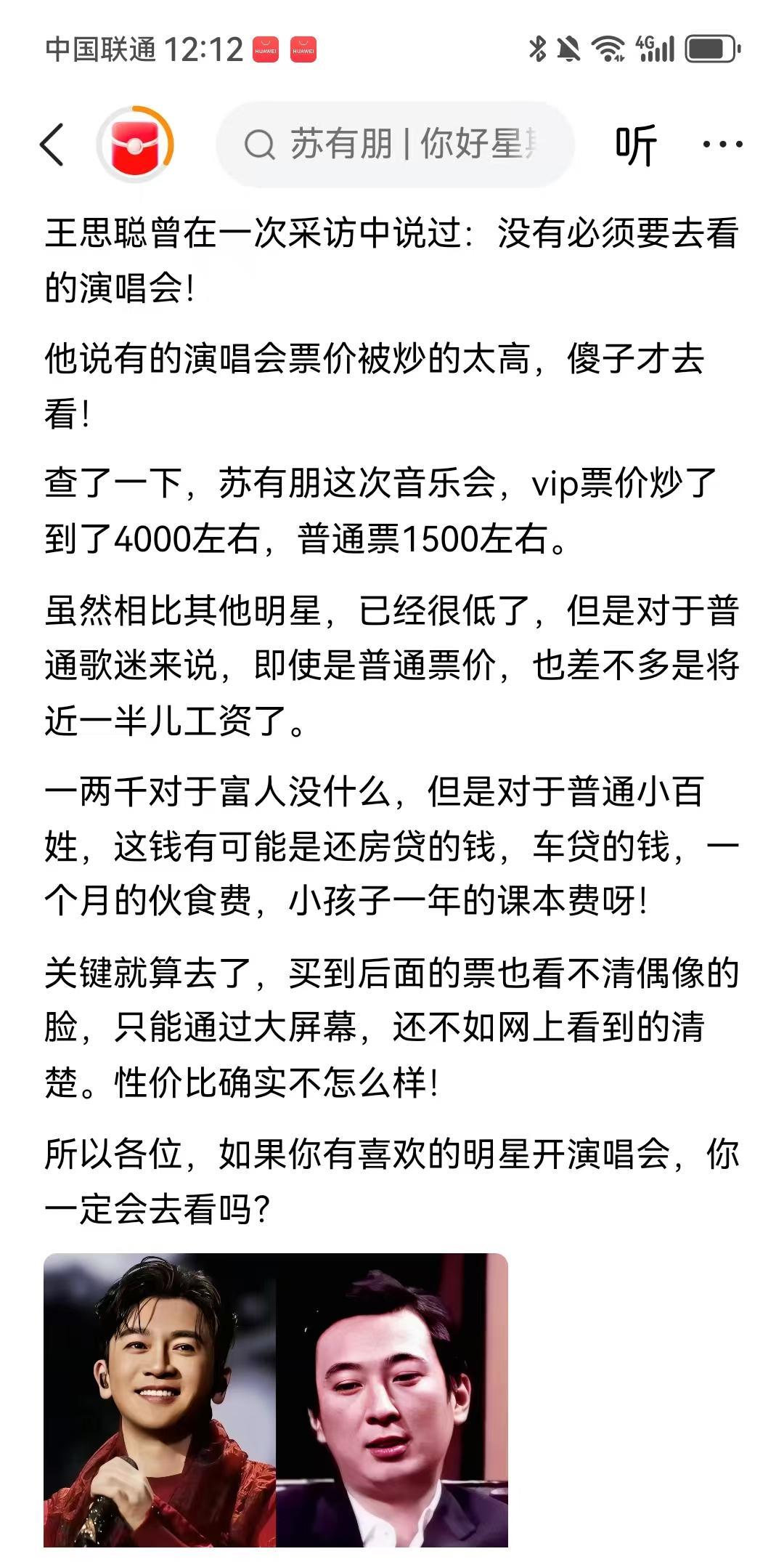 苏有朋道歉消息一出,王思聪的含金量又上升了,小时候喜欢过,但不理解现在哪来的自信定价这么高,难道是因为他的粉丝都人到中年有一定积蓄了。 没有特别非喜欢不可的人,所以除了钱多去消遣,不然不会去。 我就不去,喜欢也不去,不好买不说,讨厌人多。 不喜欢人太多的地方,挤不说,还不一定看得到人。不是说消费降级了吗?到底哪类人群降级了? 有什么看头,这1500元还不如给父母孩子用。花钱去看一个弯弯台独,都是什么人啊。 没有钱了来大陆割韭菜,还要又当又立!