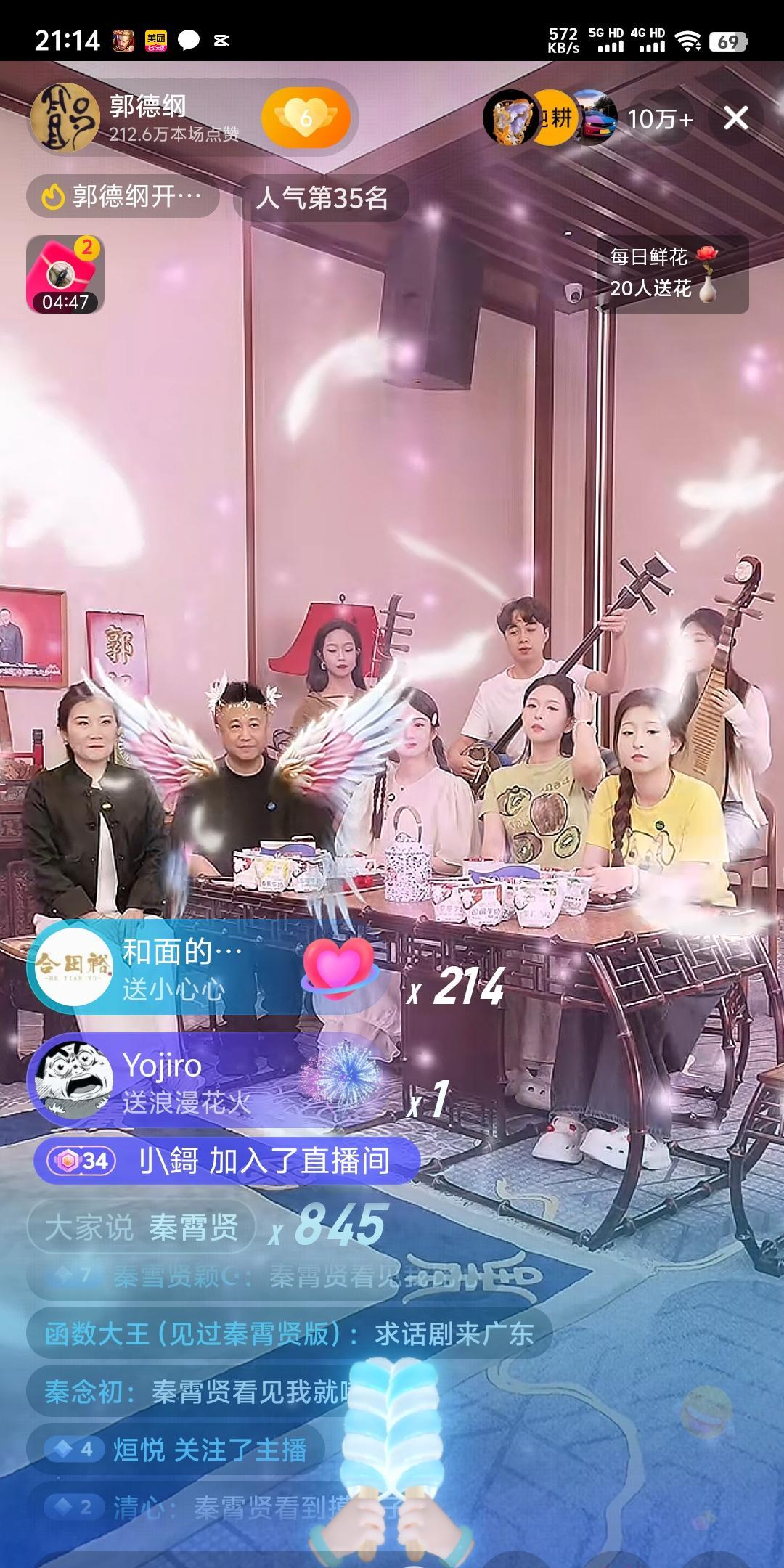 郭德纲晚上正带着秦霄贤在直播,今晚这场绝对可以让许多自媒体人凑够无数的素材。 因为郭德纲要解答“德云社未解之谜”,至于什么未解之谜,我估计是很多人想知道的网上那些给郭德纲造谣的问题也应该有。 比起前天的直播,晚上的直播开播一会就十万加,秦霄贤一路在旁边傻笑,人气是真的炸裂。 礼物也是从开播一直没有停止过,郭德纲偶尔还调侃那些特效。 晚上还有张九龄和鼓曲社的演员们,还有一位“顽皮哥”。