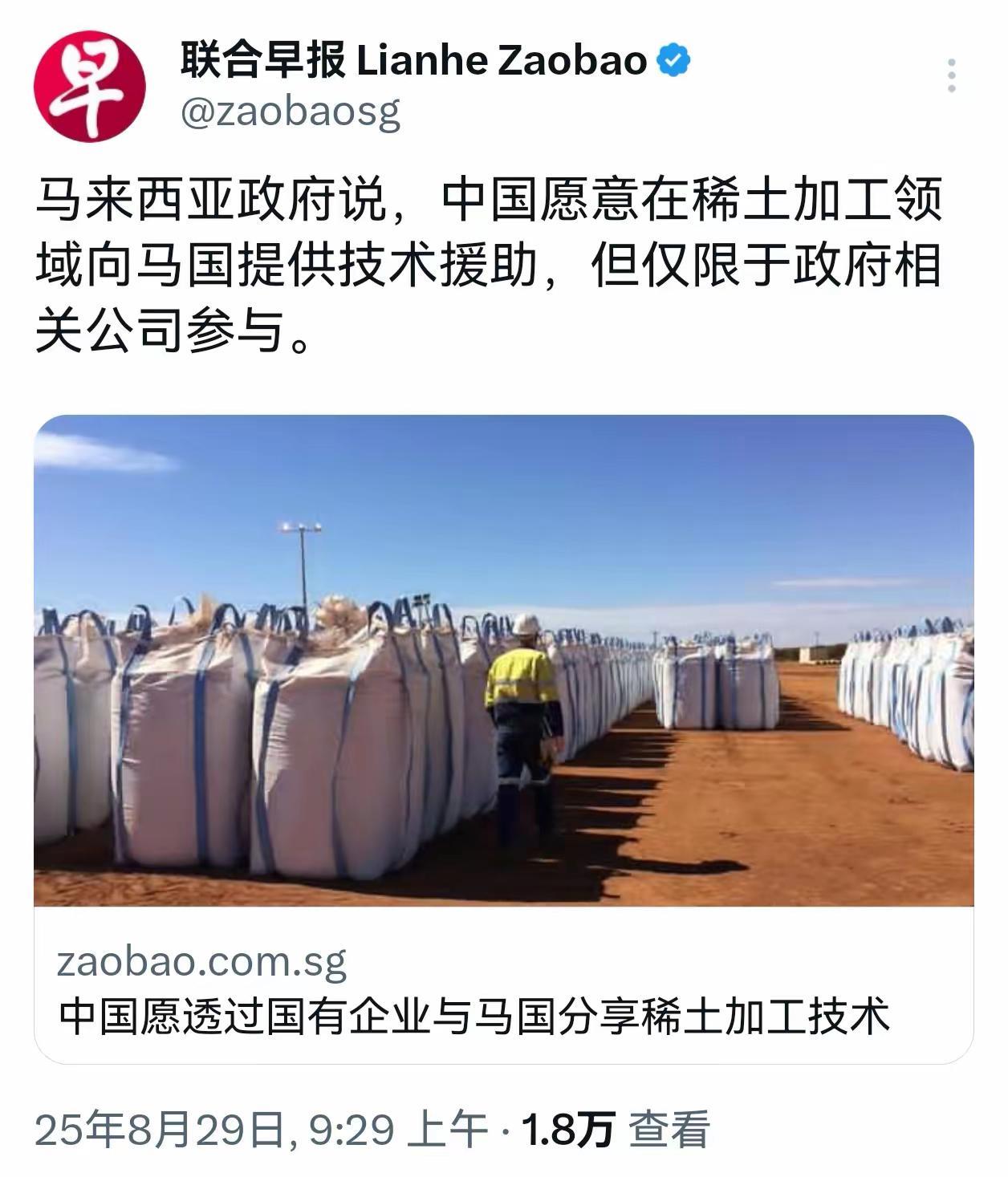 马来西亚“杀熟”,狮子大开口想要中国稀土技术! 马来西亚政府人士声称中国愿意在稀