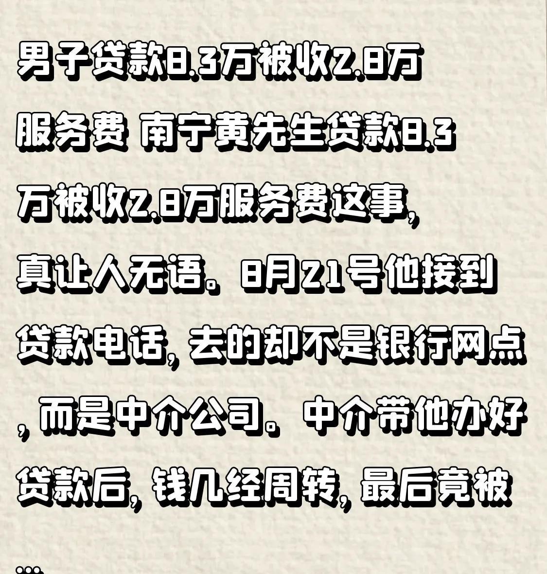 男子贷款8.3万被收2.8万服务费南宁的黄先生遭遇了一件令人无语的事。他贷款8