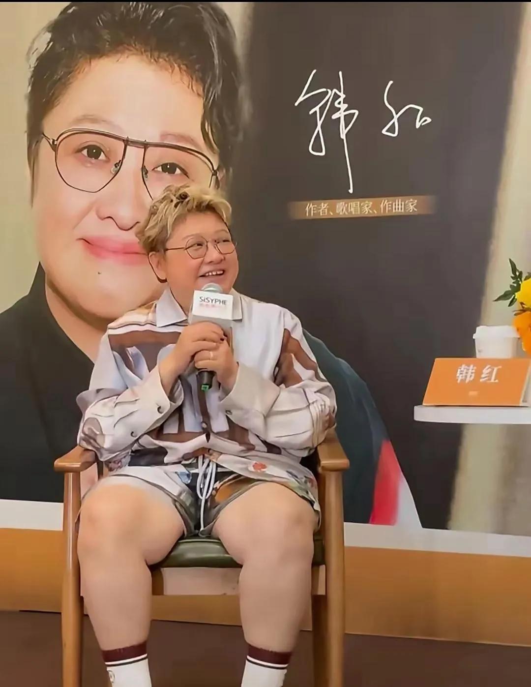 韩红对自己的身材真的很满意! 她能这样穿,那绝对是自信的,要我肯定穿长裤,把肥胖的腿全遮了,目测至少160到178斤左右,不过看到她侃侃而谈笑的开心,我也心安了; 话说,这次她说她要进军当导演了,你们猜是什么题材,票房能大卖吗?
