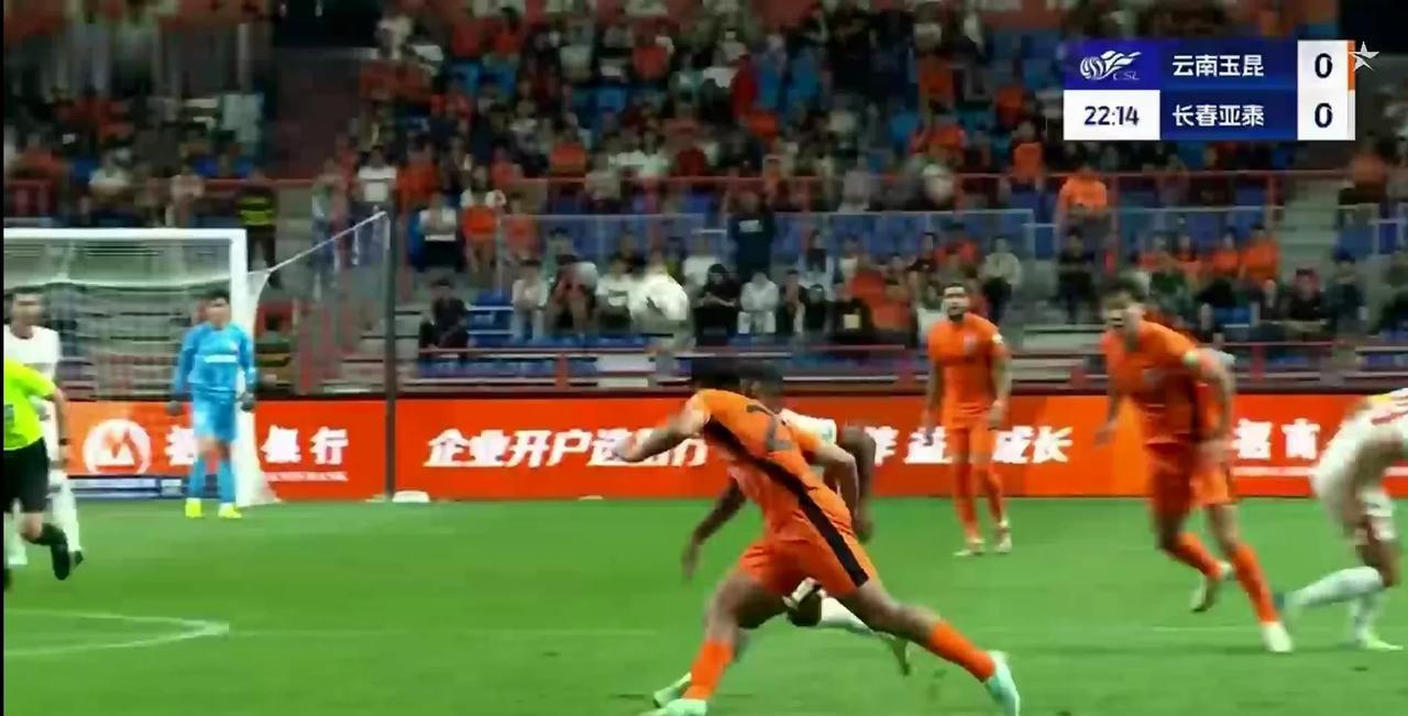 长春亚泰太猛了,31分钟,张华晨禁区中路任意球世界波直接破门,长春亚泰暂时1比0