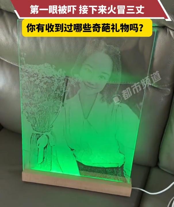 “我不是18岁,我都35岁了!”安徽,女子收到男友送来的七夕节礼物,一开始还很高兴,可打开后,看到的却是一个“黑白”照片,立刻被吓得不行,后来知道这叫“琉璃画”,又被气的不行。网友:就问你有没有情绪价值 一年一度的七夕情人节马上到了,朋友圈里和大街上不少人都在晒幸福,秀恩爱,女子收到礼物时,看到一个精美的礼盒也很高兴,可打开后,却发现是一个黑相框,里面是自己的照片 她第一反应是被吓了一跳。这画面确实有点突兀,甚至让人心里发毛。好在旁边还配了根充电线,她疑惑着插上电,相框竟亮了起来,幽幽地泛着蓝光、绿光,交替闪烁 后来她知道,这叫做“琉璃画”,是一种能发光的相框装饰。但知道了名字,并没让她感到半点开心,反而越看越憋屈 于是女子发视频吐槽:请问一下,情人节有人送这种东西的吗?我已经不是18岁了,我都35岁了 从这事上看得出,送礼物其实是个技术活。很多人觉得花点钱买个新奇的东西就行,可真正能打动人的往往不是稀奇古怪的创意,而是礼物背后有没有情绪价值 比如你知道对方最近辛苦,就送个按摩仪;知道她喜欢某种花,就去提前预订一束;哪怕只是一顿精心准备的家常晚餐,也比送个让人心里发毛的相框来得贴心 很多情侣在送礼物这件事上容易踩坑,因为思路还是停留在“好看”“特别”上,却忽略了对方的感受。对35岁的女人来说,礼物需要的是温暖和体贴,而不是搞得像惊悚道具一样的新潮玩意 #女生吐槽七夕收到奇葩礼物#
