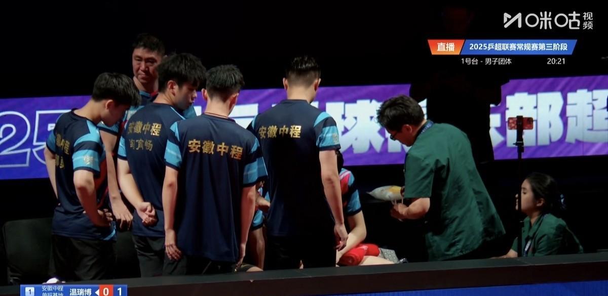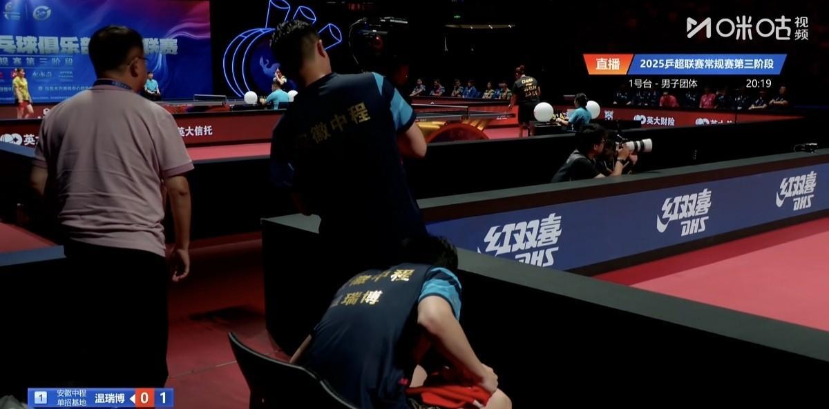 揪心!小将温瑞博受伤弃权! 2025乒超联赛常规赛第三阶段的比赛,男