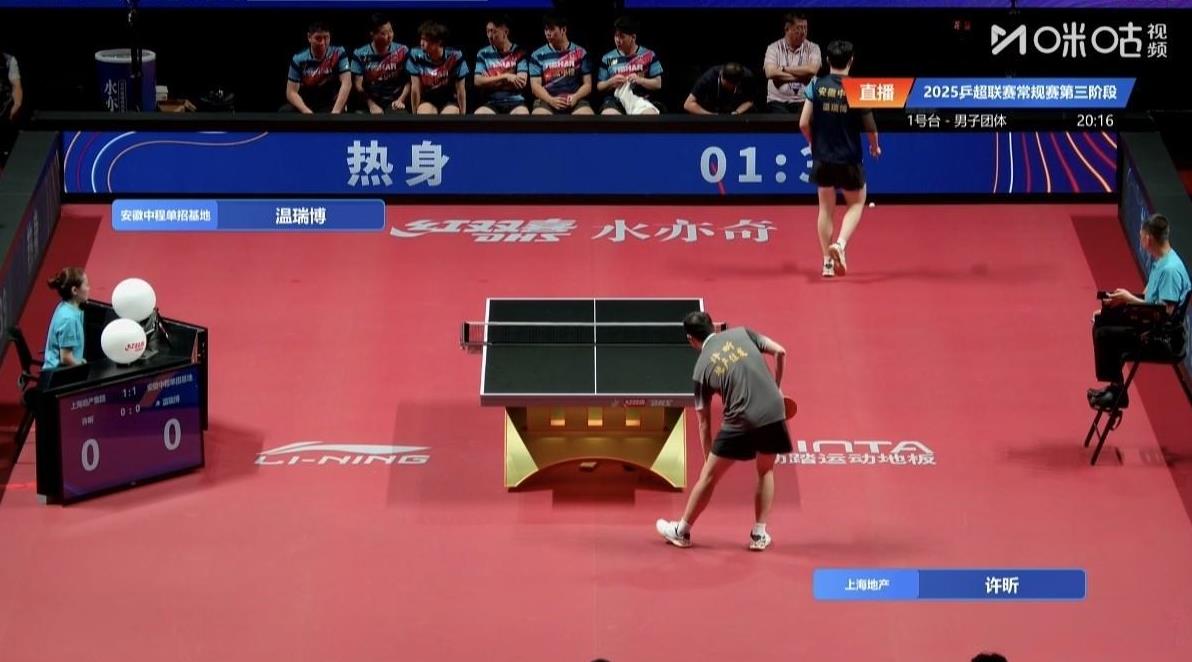 揪心!小将温瑞博受伤弃权! 2025乒超联赛常规赛第三阶段的比赛,男子团体安徽中程单招基地对阵上海地产集团。 第一盘,温瑞博搭档新加坡外援郭勇以3:1战胜上海地产的周恺/许昕。 第三盘比赛,温瑞博对阵许昕。比赛刚开始就出现意外,温瑞博为救球导致摔伤,不得不接受场外医疗。 温瑞博回到场上继续比赛,但明显出现了问题。 温瑞博不得不弃权。许昕以3:0战胜温瑞博。 上海地产大比分2:1领先安徽中程单招。 希望温瑞博早日康复!