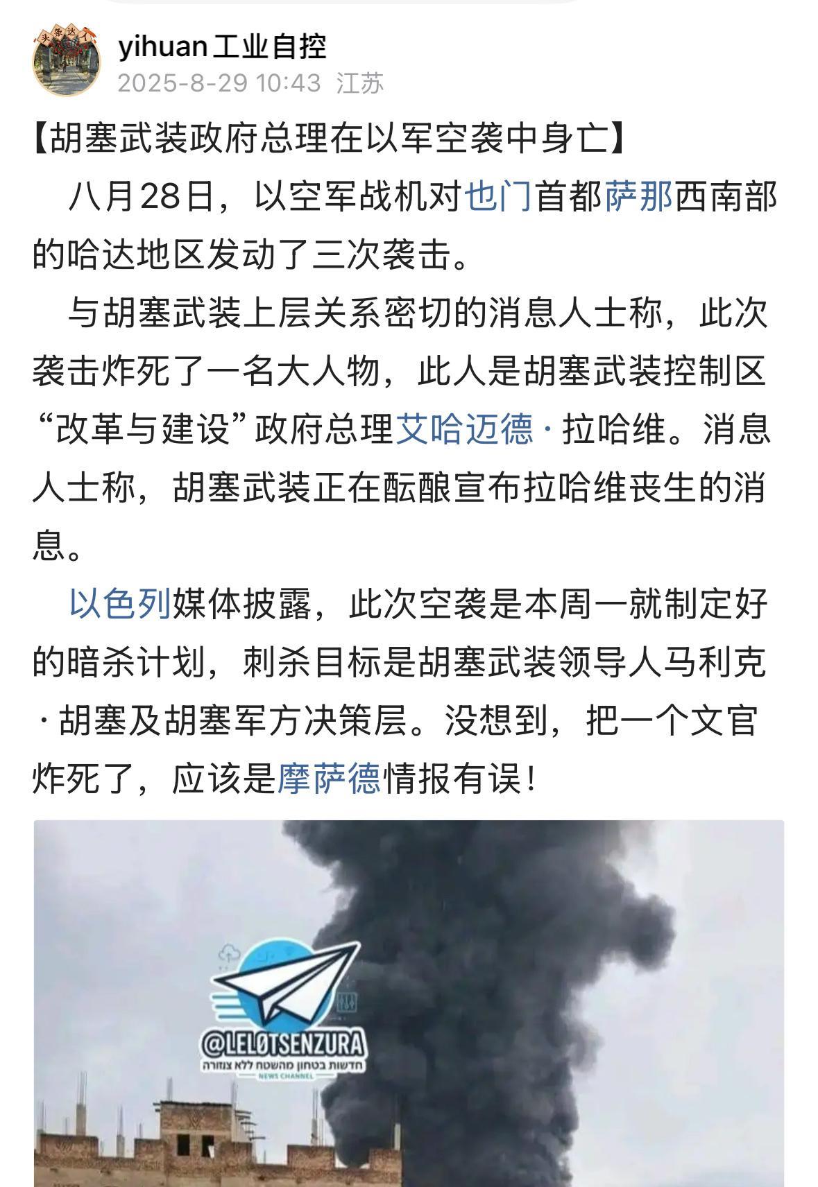 8月30日下午,胡塞武装正式发布官方声明,胡塞武装控制区的萨那“变革与建设”政府总理艾哈迈德·拉赫维、经济与投资部长穆印·马哈利克、内政部副部长阿卜杜拉·穆尔塔达等内阁要员在以军28日的空袭中遇害。 声明指出,总理和部长们在开会时遭到以色列敌人的袭击,还有数名部长受伤,有人伤势严重,正在展开救治。 艾哈迈德·拉赫维出生于也门南部的阿比扬省、汗法尔县的拉赫维部落。2015年被胡塞武装任命为阿比扬省省长,2016年加入最高政治委员会。2024年拉赫维被任命为总理并被授权组阁,上任刚满一年就遇难,确实很可惜!