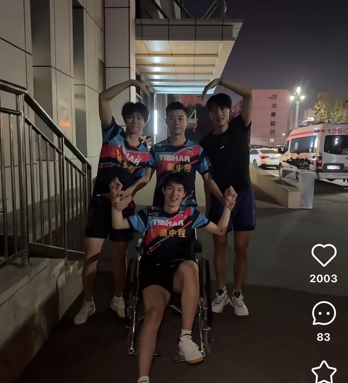 温瑞博报平安啦——没有伤到骨头 8月30日,乒超联赛第三阶段新疆站,温瑞博在与许