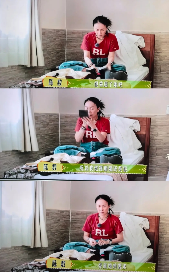 陈数真的不适合参加综艺节目,很容易败路人缘。其一,她缺乏综艺感;其二,身体状况也不允许。她总挂在嘴边说自己做了十几年公益,爬山路都不在话下,可这一季第一期她就累得够呛,大家还都得顺着她。 今天这期同样如此,因为她怕冷不能吹空调,回到酒店房间后直接拔了电源,全然没顾及同屋那英的感受,那英回来热得难受,没空调可吹,只能撩起衣服散热。陈数还让那英多担待,那英也只能无奈忍受,热得没办法,只能去两个弟弟房间乘凉。其实她要是怕冷,完全可以自己加件衣服,毕竟热的那个人真的不好受,她这么做真的太自私了。