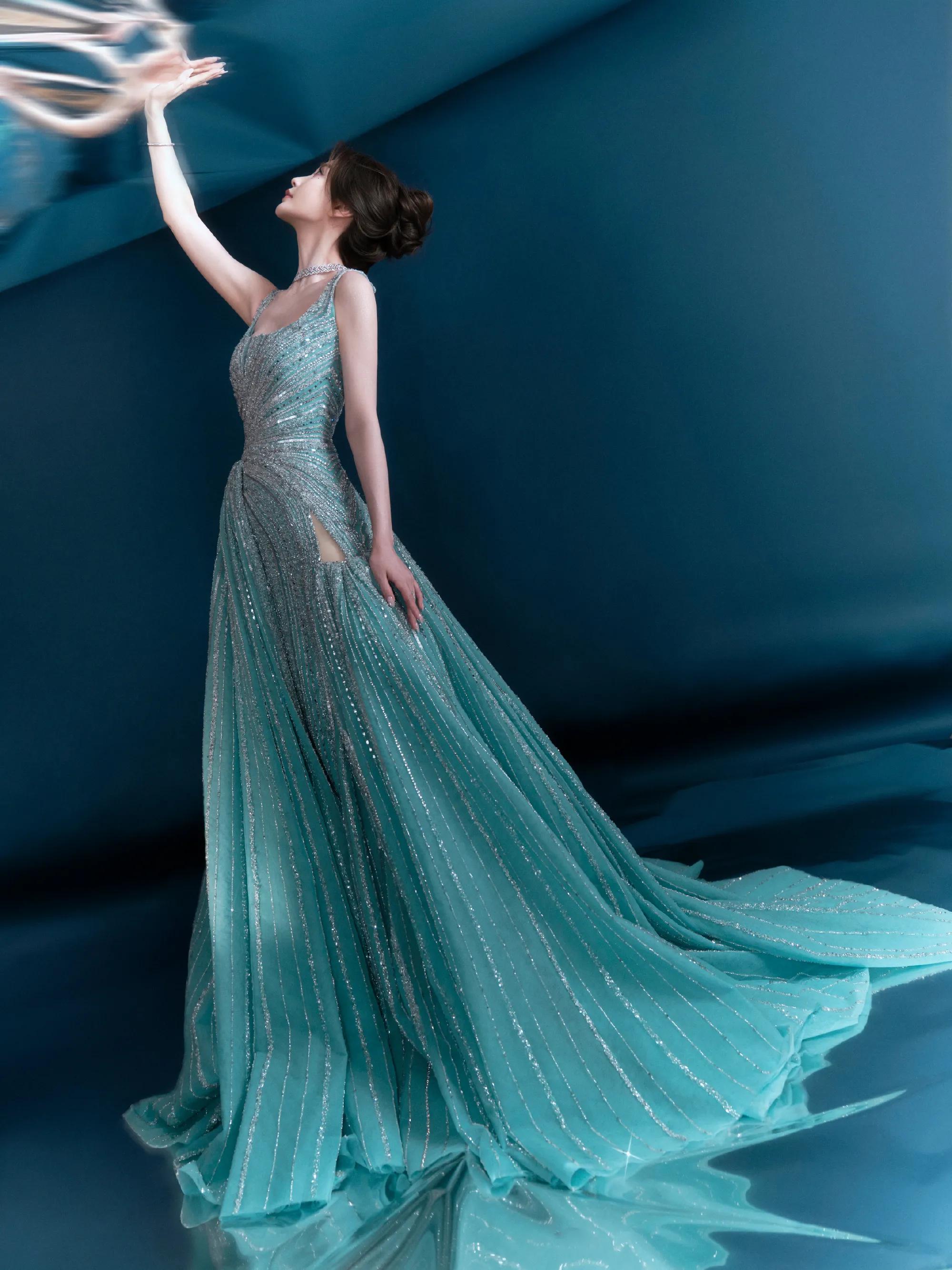 薄荷绿纱裙配人鱼泪妆!Angelababy这颜值是真实存在的?