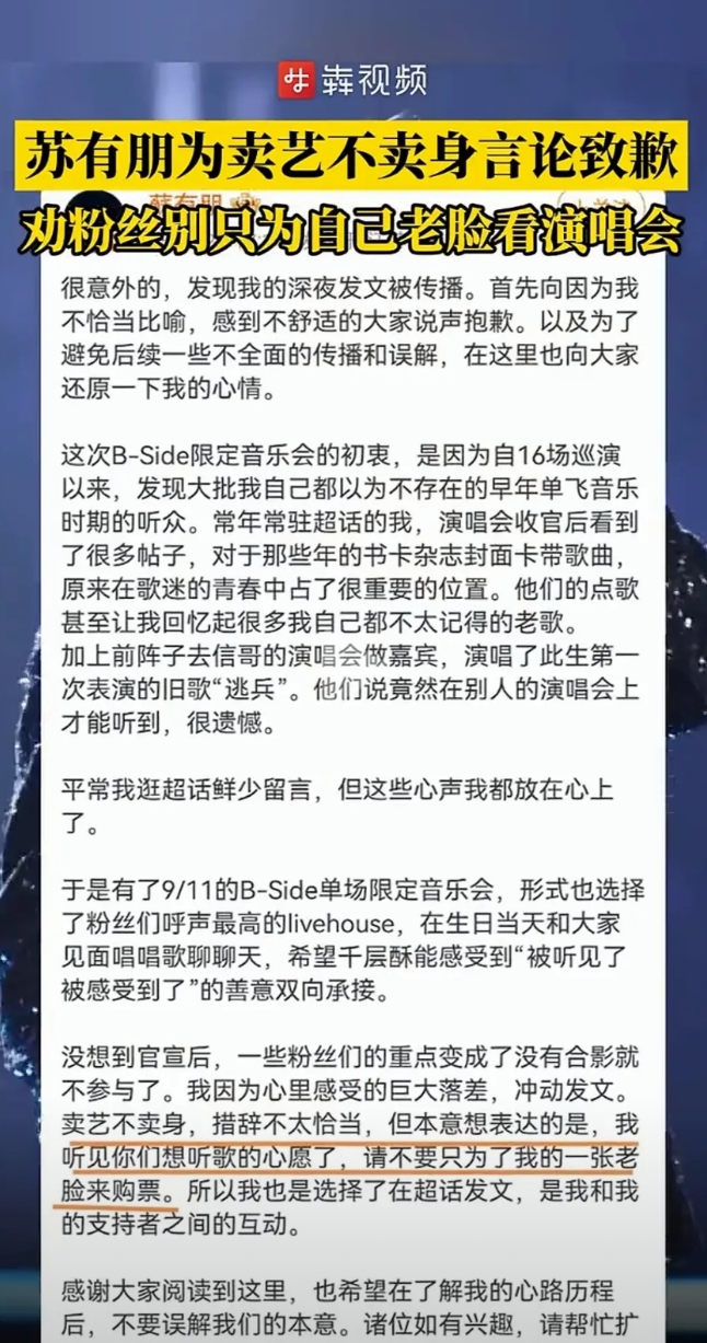 没想到你的回应情商这么低,非但不安抚歌迷,还说什么“卖艺不卖身,不爱音乐的别来”