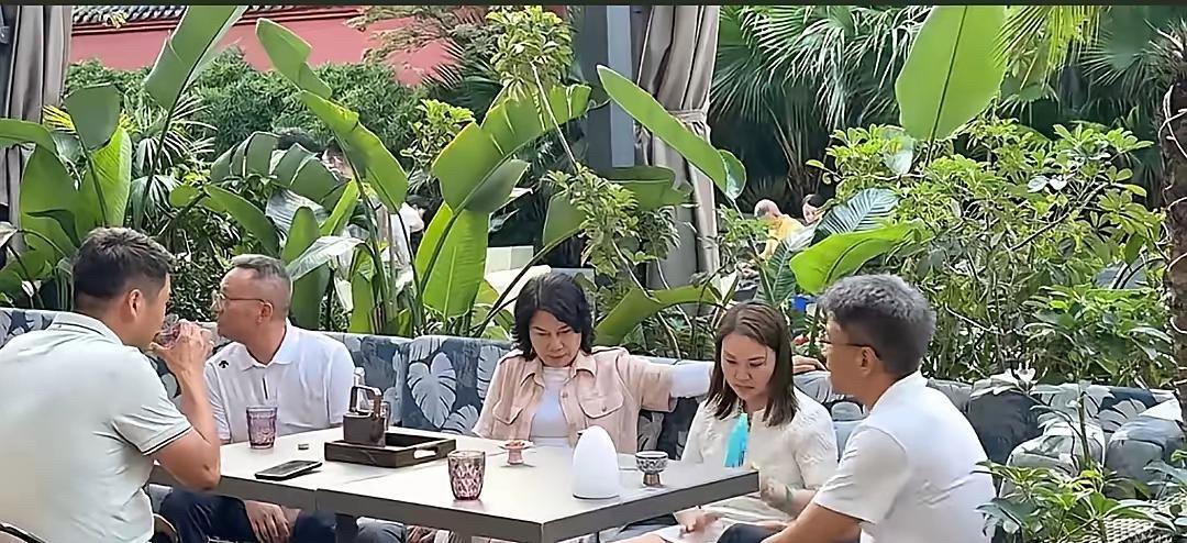 近日董明珠在成都春熙路逛街,累了到路边休息喝茶。有网友看到后拿着手机拍,助理没有