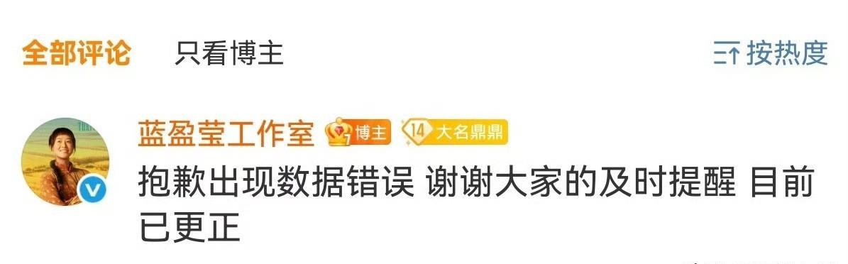 #蓝盈莹 工作室道歉# 蓝盈莹工作室就#生万物#收官战报中数据有误一事致歉,目前错误数据已更正。