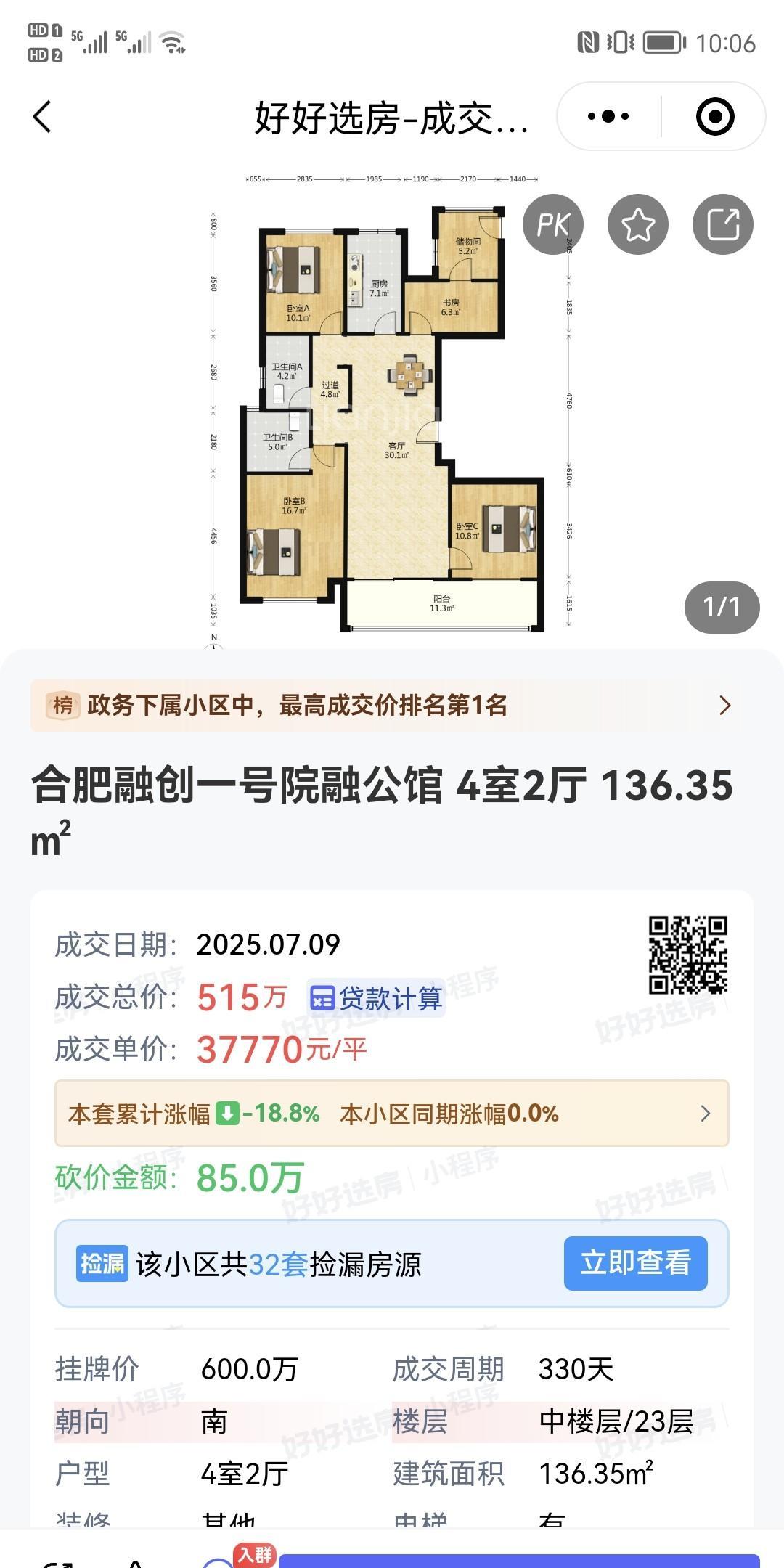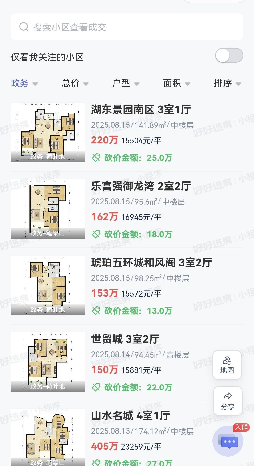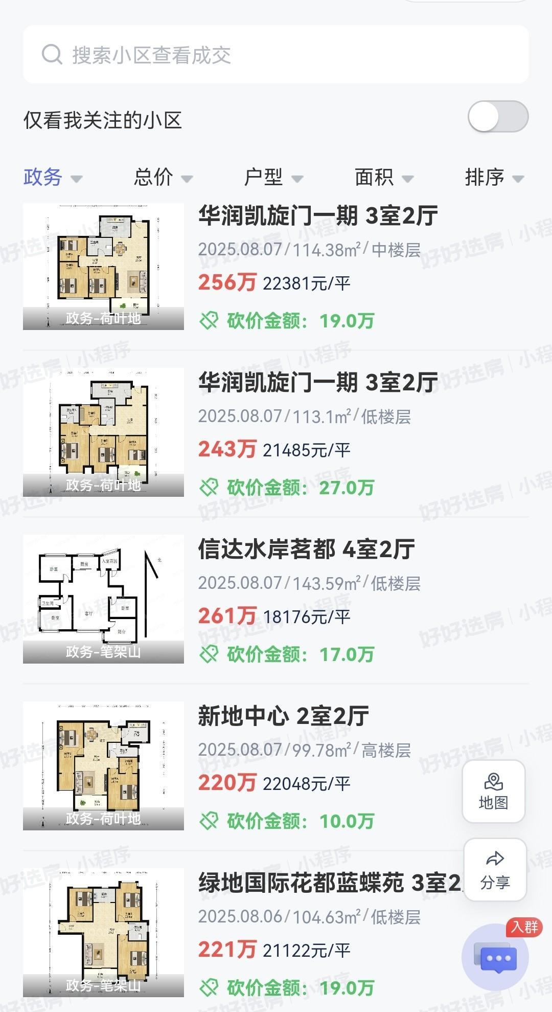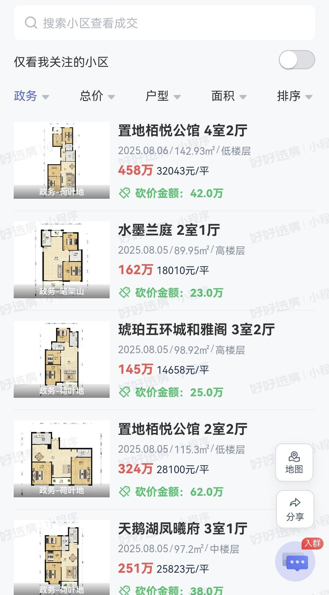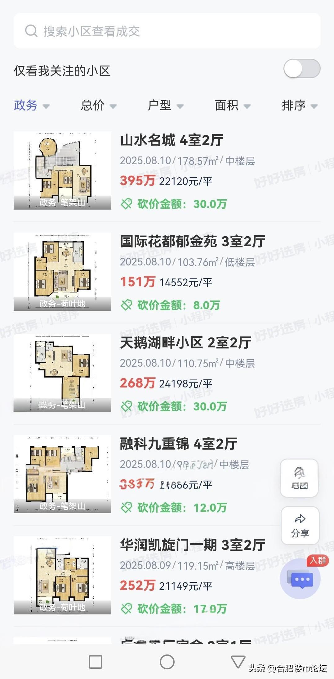 合肥政务区最近一个月二手房成交情况。看政务区房价,合肥其实还很友好,竟然单价过两