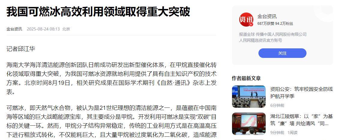 炸了!中国最新突破一出来,美西方彻底慌了!以前他们垄断能源耍威风,现在咱直接断他们后路,这反转简直意想不到! 别再觉得石油还是世界能源的老大了! 中国手里的可燃冰技术一突破,直接把西方靠化石能源吃饭的退路全堵死了——这可不是简单的能源更新,是把他们卡别人脖子几百年的套路,原样奉还给他们! 西方以前垄断石油,根本不是靠军队横,核心是攥着技术命门! 早年间中东有油却没本事采,得求着西方公司来钻井;采出的原油只能贱卖,回头想用车加汽油、工厂用塑料,还得花高价从西方买成品。 为啥?勘探、炼化的核心技术全被他们垄断,连卖多少钱、好不好用都是他们说了算 —— 技术卡脖子,就是这么狠! 可现在风向彻底变了!可燃冰一来,石油、煤炭这些污染大的玩意儿就得逐步歇菜。 这东西一立方米顶 160 立方米天然气,全球储量够人类用 45 万年,还比煤炭少排 40% 二氧化碳,比石油少 20%,配上环保设备甚至能零排放。 以前西方总拿 “碳中和” 压我们,现在轮到他们慌了 —— 化石能源要淘汰,他们靠这个赚了几百年的老本行,直接没了! 最解气的是,可燃冰的硬骨头,中国全啃下来了! 这东西难就难在俩地方:一是深海开采,水深好几千米,压力大到能压碎设备,还得扛接近零度的低温,稍微错一步就可能塌地层;二是转化成能直接用的甲醇,这工艺以前没国家能搞定。 结果中国不仅搞出 “蓝鲸二号” 这种深海平台,还打通了从开采到转化的全链条,相当于把可燃冰的 “钥匙” 攥死了! 而且这技术壁垒比西方当年搞石油高多了 —— 他们当年也就在陆地、浅海折腾,中国这是在极端环境搭起整套体系,他们现在连边都摸不着! 西方能不慌吗?埃克森美孚、BP 这些巨头靠石油赚了几百年黑心钱,现在可燃冰要替代化石能源,核心技术在我们手里,他们连插脚的机会都没有。 以前他们卡我们石油设备的脖子,现在想搞可燃冰,就得看我们的脸色;以前他们定原油价格,以后可燃冰怎么卖、怎么用,得听我们的 —— 这哪是断财路,是刨他们的老根! 以前西方总说 “能源霸权在他们手里”,现在呢?可燃冰一普及,他们的石油帝国就得塌,想追可燃冰又没技术。 这不是我们故意针对,是他们守着老一套不进步,活该被淘汰!你说这解气不解气? 当年他们怎么欺负别人,现在就怎么被反过来拿捏,这就是中国技术硬起来的底气!