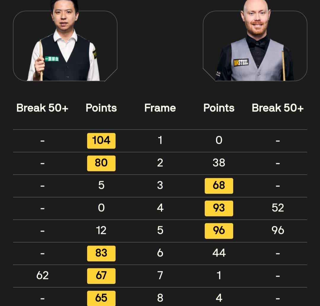 肖国栋 5-5 加里·威尔逊! 8月30日,斯诺克武汉公开赛决赛,卫冕冠军对阵大黑马加里·威尔逊。后者先后淘汰了肖恩·墨菲、贾德·特鲁姆普、约翰·希金斯和马克·艾伦,状态逆天,强势晋级决赛! 决赛19局10胜制。分两个阶段进行,第一阶段14点开始,打满9局;第二阶段晚上19:30开始,决出冠军。 前两局,肖国栋获胜,2-0领先;加里·威尔逊单杆52分、96分连追3局,3-2领先。肖国栋止住颓势拿下第六局,3-3平。肖国栋乘胜追击打出单杆62分连赢两局,5-3领先!加里威尔逊单杆116分拿下第九局。 第一阶段比赛结束,肖国栋5-4加里·威尔逊。 第十局,加里·威尔逊单杆118分获胜,比分5-5战平。