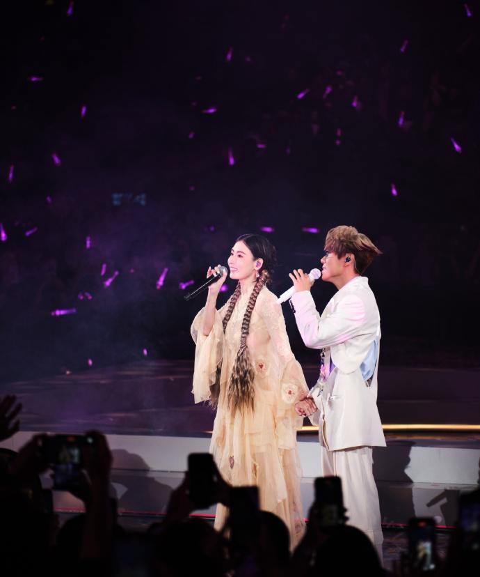 最近张柏芝好林家谦一起登台现场,两位看起来特别的有默契。 张柏芝这回穿了一件白色的纱裙,看上去格外的漂亮,也很有魅力。 她的身材保持的很不错,穿上这件裙子之后就更迷人了,而且超有清新时尚感。 张柏芝绑着两条很美的麻花辫,还画着精致的妆容,气质特别的出众。 林家谦穿了一身白色的西装,像个英俊的白马王子,也很有型。 两位站在一起还很有浪漫感,舞台效果相当不错。