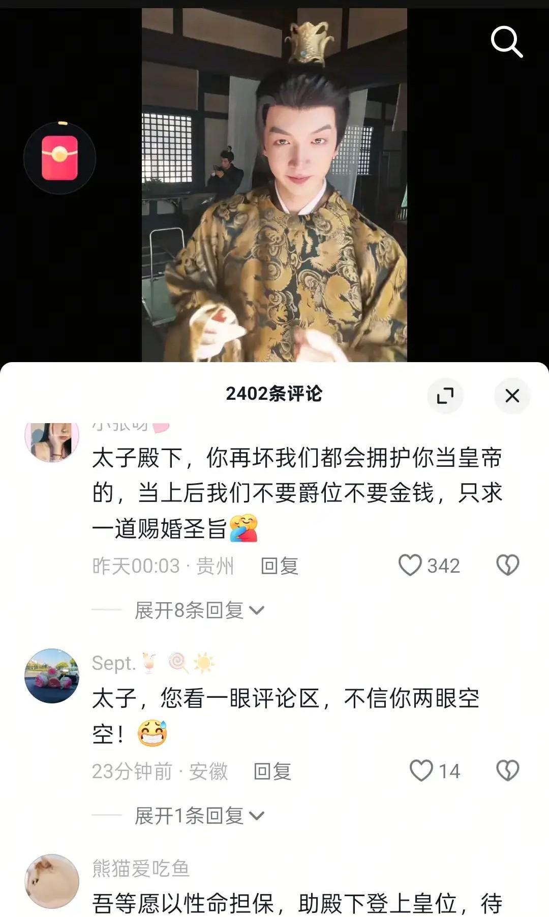 笑出鹅叫声[泪奔] 肖爹的亲儿子演起太子 急坏观众 全部愿意帮他篡位夺权当皇帝[捂脸] 成功后不要金钱不要加官晋爵 只求一道赐婚圣旨 为谁求? 为他钦哥求[笑哭] 为了赐婚扶他上位,大家也是拼了 要我说干脆众筹一部片子,让凯文当皇上,篡位都省了,直接赐婚好了[大笑]
