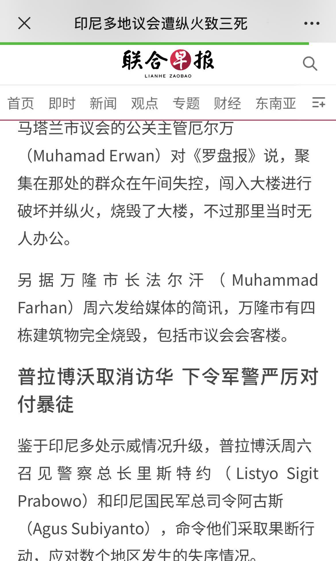 【为平息国内抗议示威游行,普拉博沃取消了访华行程】 鉴于印尼多处示威情况升级,