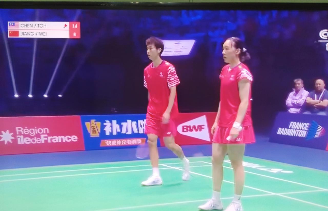 陈堂杰真的一直偷魏雅欣的后场,看来我们的弱点就是他们的突破点,振欣加油调整战术! 今天是马来西亚的国庆节,感觉陈杜比平常更兴奋,但相信振欣组合,你们可以的[奋斗]! 这是2025巴黎羽毛球世锦赛混双决赛,评论区继续播报战况!