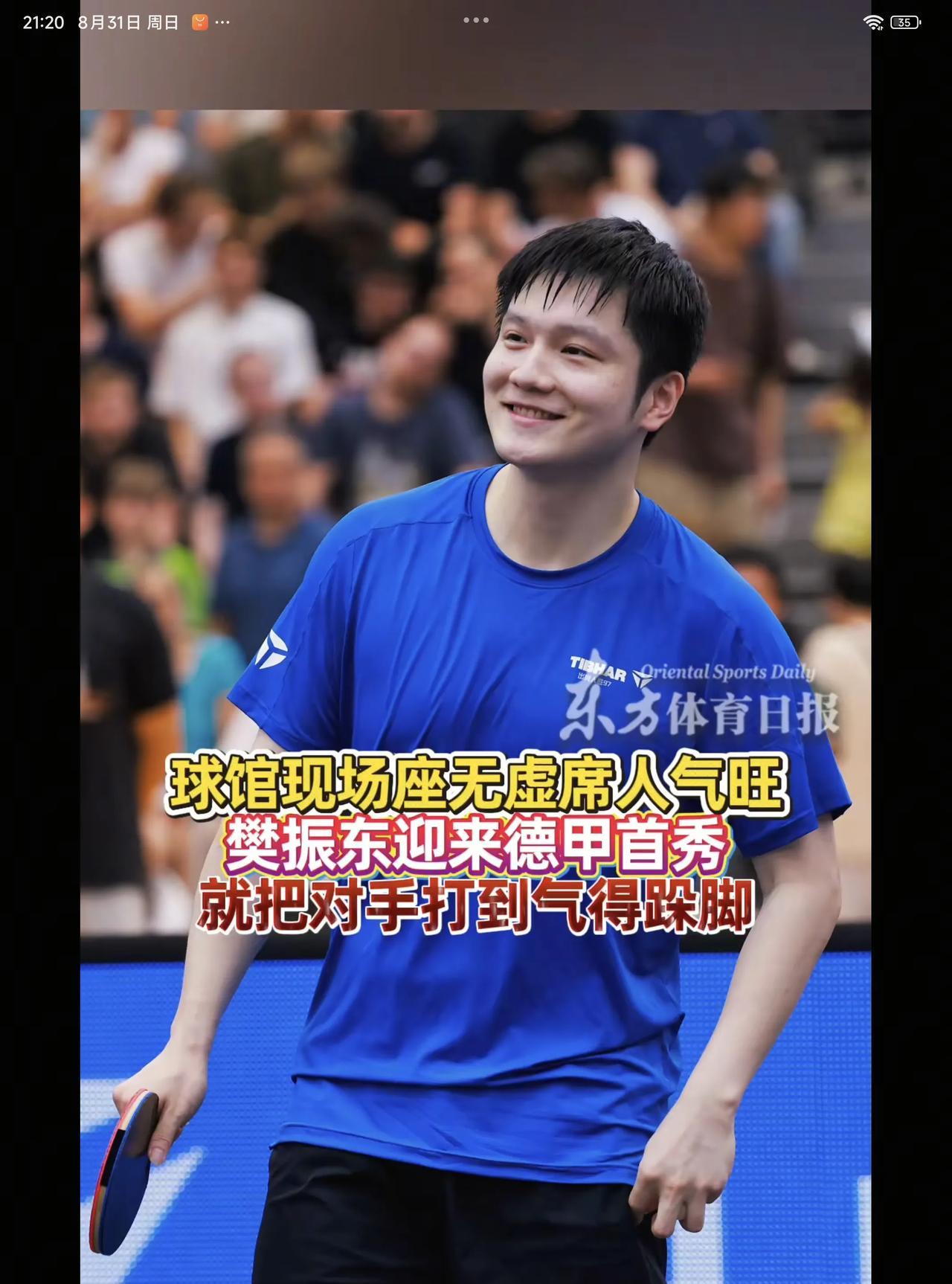 08月31日,樊振东爆冷不敌鲁伊斯,备受瞩目的樊振东,迎来了自己在德甲赛场上的首秀,没想到会首秀就失利了 樊振东在德甲首秀,吸引了许多球迷前来观看,没想到樊振东2:3不敌鲁伊斯,可能是首场比赛,有紧张和还没适应场地 在整场比赛中,樊振东吃对方的发球,就有15次,这在以往的比赛中是从未有过的,说明首秀对樊振东还是比较紧张的,再有长期的没有进行比赛,多多少少影响了手感的发挥,所以樊振东走出国门参加德甲比赛是非常有必要的,这样既能保存竞技体育的对抗,也能更好的调整自己的状态,期待樊振东VS杜达的第二盘比赛 樊振东VS鲁伊斯比分: 11:13,11:4,11:9,5:11,6:11