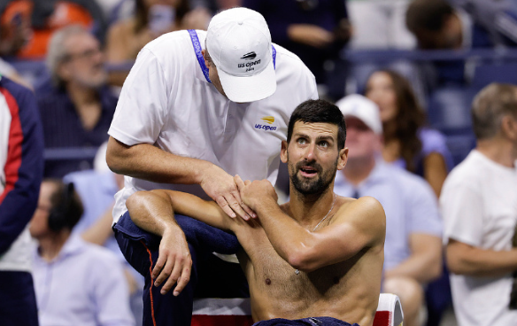 很美的一幕!原来在美国网球公开赛男单,德约科维奇逆转战胜了什瓦伊达晋级后,他再