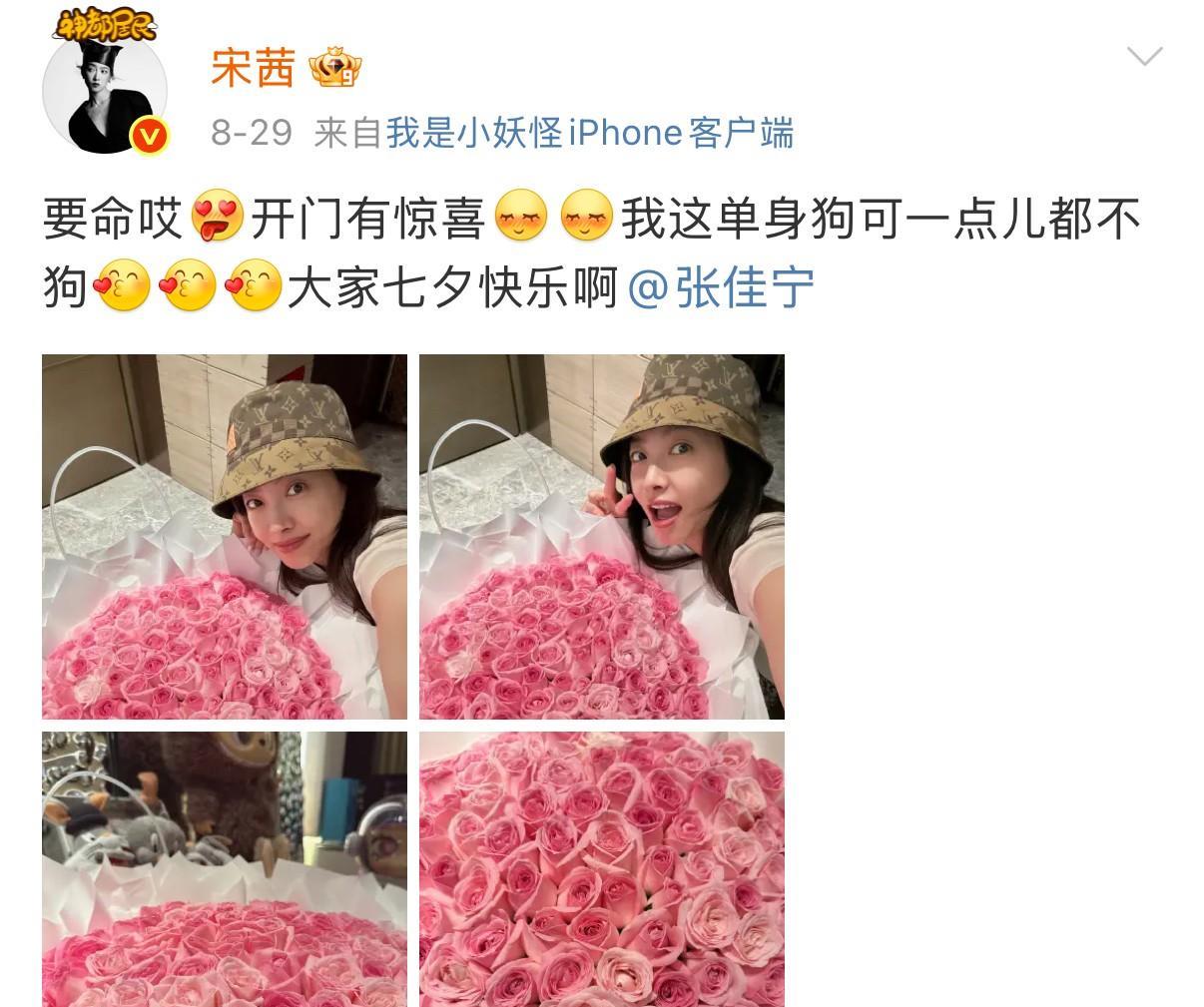 宋茜和张佳宁关系真是好,不但一起逛街,七夕节还送鲜花!