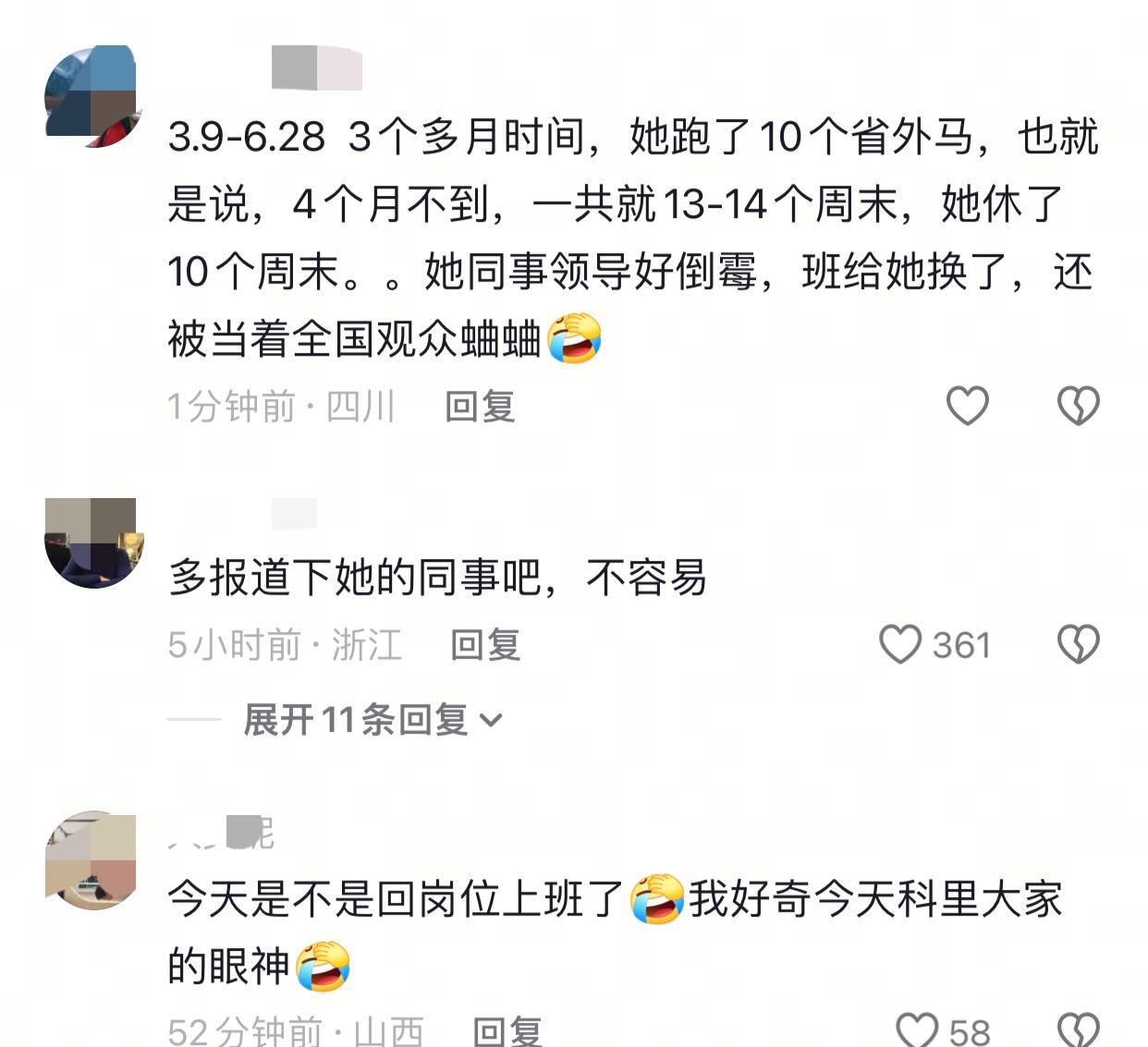 福州“最速女护士”张水华拿了一个马拉松冠军,本以为她会感谢同事的换班、医院的支持,没想到赛后一番话直接把领导的脸打肿了,她说自己从事医护工作,参加比赛不容易希望领导多支持她让她周末调休。在她的一个宣传视频里可以了解到她经常在周末参与各地的比赛,而她不在只能让别人牺牲周末时间和她换班,领导也不能为了她的爱好为难别人,毕竟荣誉和奖金都是她自己的。