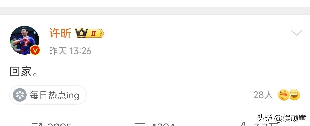 现在知道许昕为啥回家了! 今天是9月1号,要送孩子上学。 许昕这次的乒超参加两场比赛,这两场比赛上海地产都赢下,助上海地产进入四强! 除了比赛,许昕在乒超还秀了一番艺术家打法,给年轻人上了一课! 这种家庭、事业两不误的生活,太让人羡慕了!