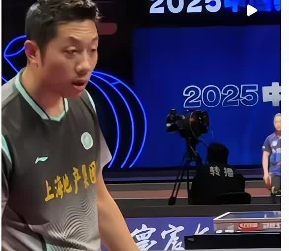 对手多次严重回抛,许昕示意裁判,但是裁判不管,许昕故意复刻了一个对手发球,裁判立