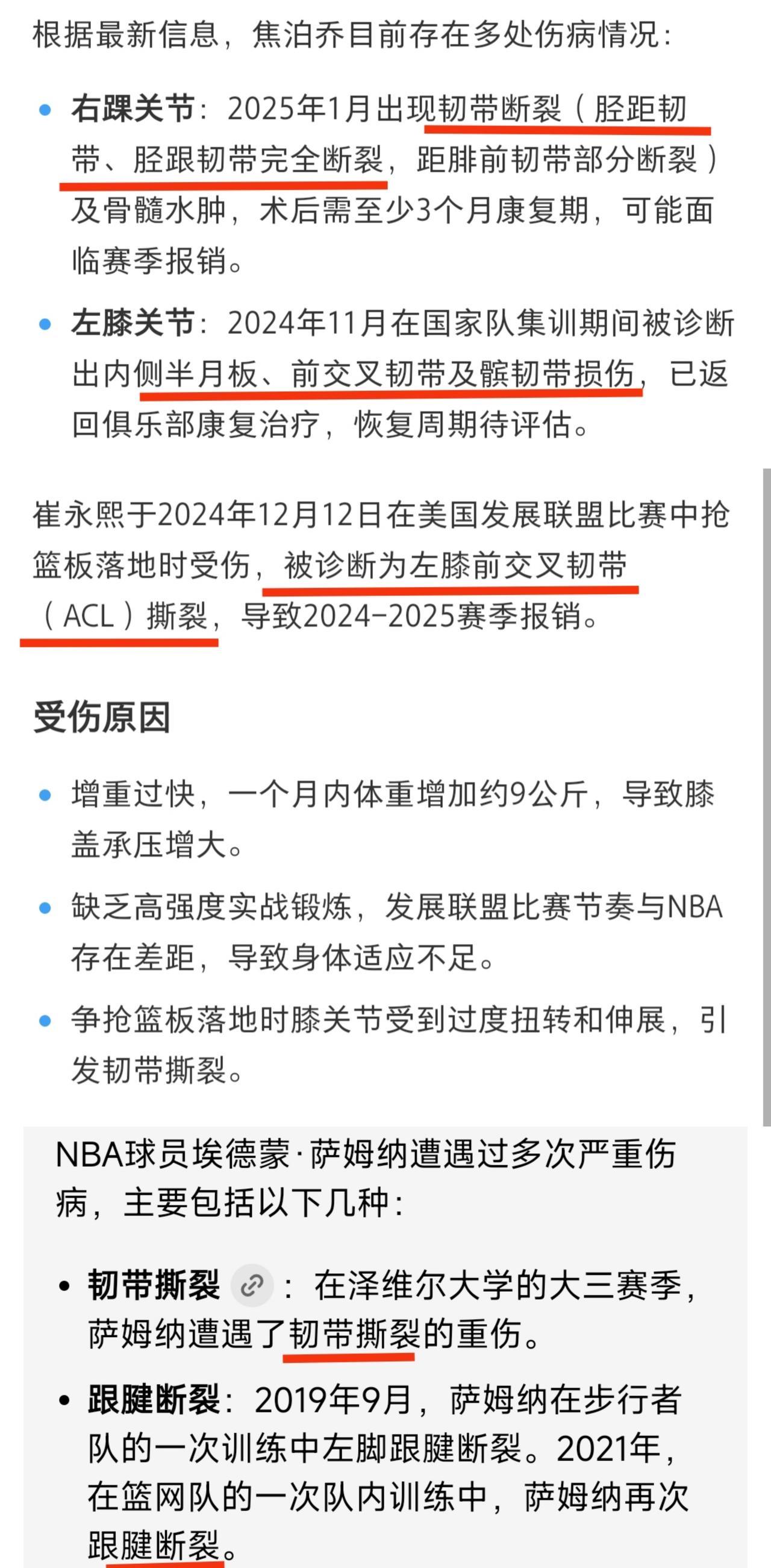 广东宏远中锋焦泊乔一个人提着行李,步履蹒跚来到宏远员工宿舍,韧带损伤,历领半年多的康复,现在可以站起来,恕我直言,崔永熙也是经历韧带撕裂,但是比起焦泊乔的伤病是小巫见大巫,后者除半月板损伤,曾经还经历过职业球员毁灭性伤病,韧带断裂,所以朱芳雨在休赛期是挺有魄力的,签下两位经历过大伤球员,恕我直言,两个球员伤病即使恢复也影响很大,运动员膝盖半月板和跟腱是最重要的直接影响运动能力和爆发力,不过能重回球场意志力精神可嘉!