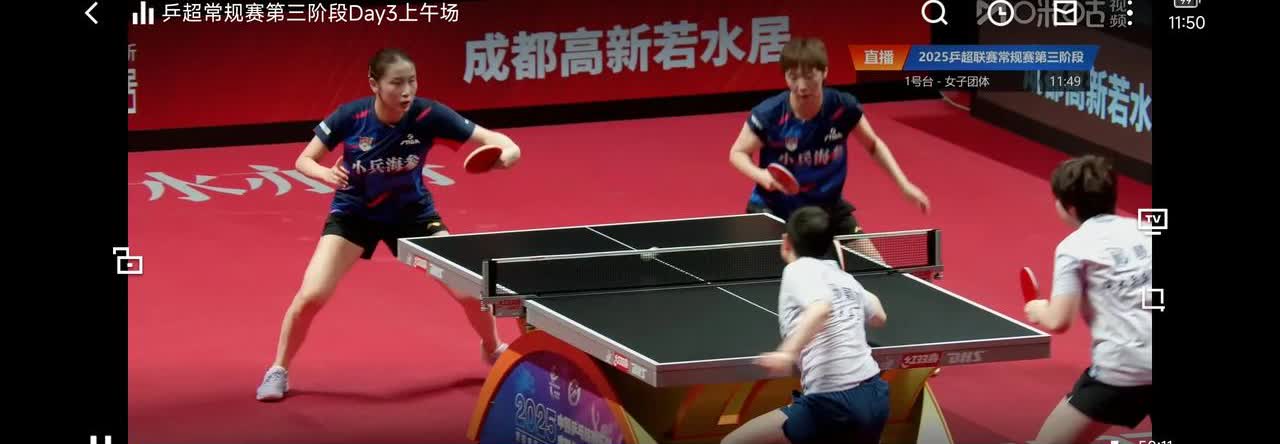 乒超联赛今天上午女子团体上演了一场强强对话,深圳大学对阵山东鲁能。第一盘双打孙颖
