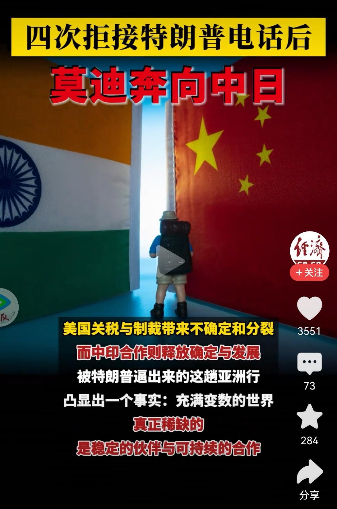 美国对印度的关税一定会降,因为印度硬起来了,特朗普给莫迪打四次电话,莫迪都没接,