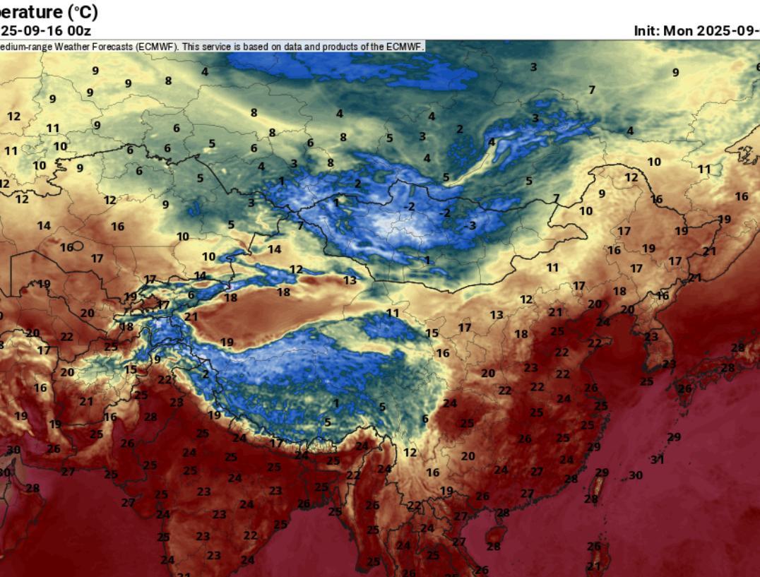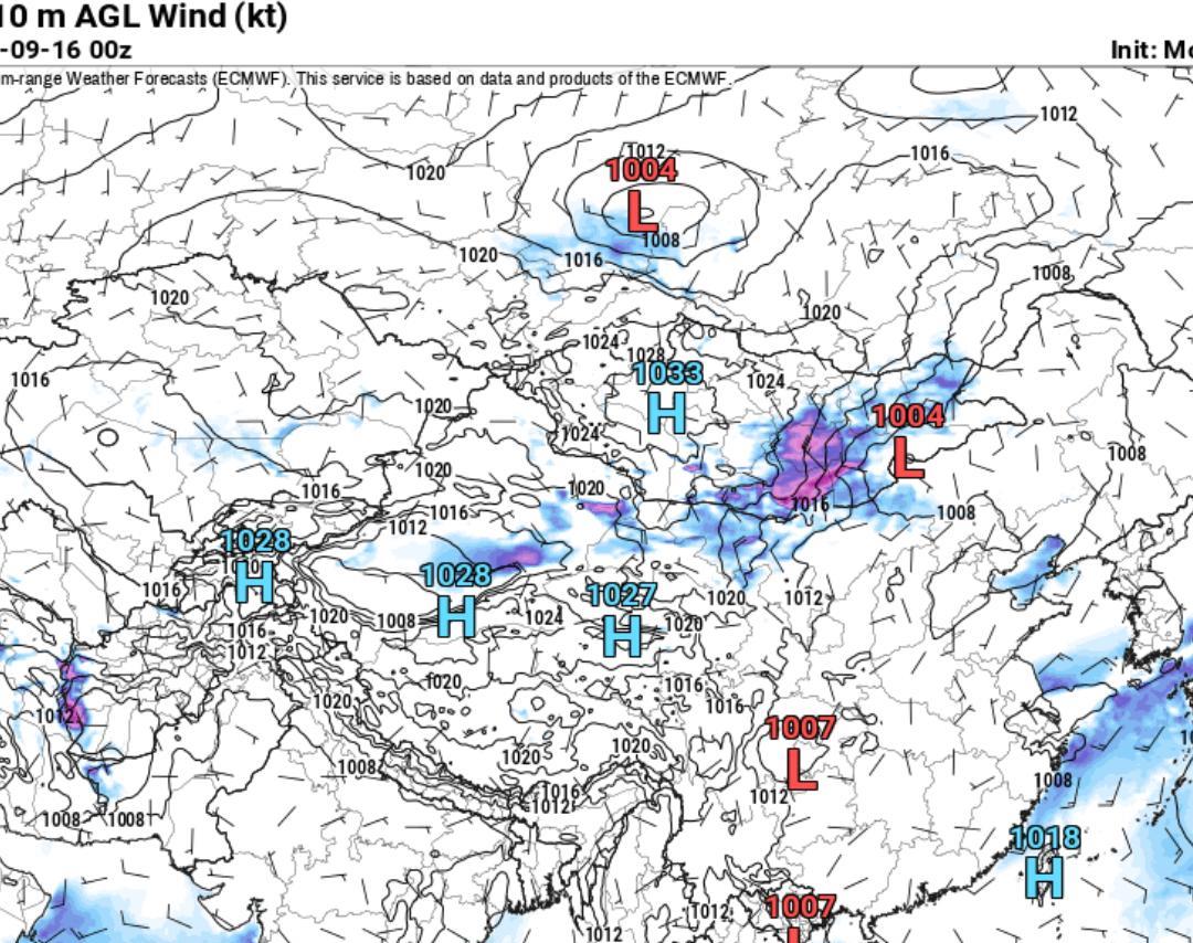 根据今天最新出炉的15天数值预报,9月16日外蒙古境内有冷空气,冷空气冷高压中